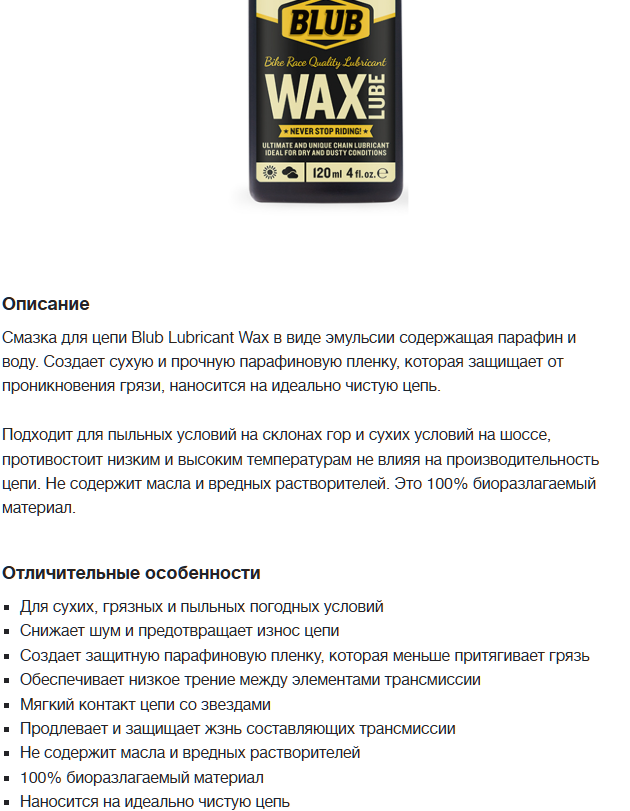 Третий год юзаю Смузи Lube, парафиновая жидкая смазка для цепи с тефлоном, после нанесения парафин застывает и лишние куски отваливаются, при этом пока он жидкий - текучесть отличная, во внутрь цепи заходит отлично, пока что лучшая смазка которой пользовался.