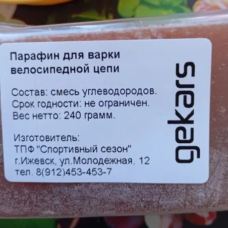 Никаких специальных «велосипедных» смазочных материалов и растворителей покупать не нужно. Это бесполезная трата денег. Парафин и воск не являются смазочными материалами. Людей которые парафинят цепь называют парафинодебилами. Отличительной особенностью парафинодебилов является постоянное вранье и самообман. Они врут что пропарафиненая цепь не загрязняется, врут что пропарафиненная цепь меньше изнашивается чем смазанная маслом. Естественно никаких проверяемых доказательств не предоставляют. Парафинодебилами становятся из-за отсутствия знаний о смазочных материалах. Последнее время парафинодебилы стали заниматься подменой понятий. Известно, что парафин используется в некоторых пластичных смазочных материалах как загуститель (например, в вазелине техническом). Но вместо этого парафинодебилы-манипуляторы стали называть парафин не загустителем, а твердым смазочным материалом! Потому что сам по себе загуститель не представляет из себя какой-либо ценности, а назвав парафин твердым смазочным материалом повышается его значимость. МЧС России по Кировской области предупреждает: не экспериментируйте на своей кухне! https://43.mchs.gov.ru/deyatelnost/press-centr/novosti/4177805