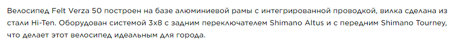 >>1537536 Рама с тремя треугольниками и оверлапом в шатуны красивая конечно, но навеска всратая. То черное, то хром. Вынос смотрит в небо, обмотка ни с чем не сочетается, под всратым седлом аниме-девка висит UwU, сэнпай. Ладно хоть соотношение кажется человеческое 49×19? и обода низкопрофильные. Но если ездит заебись и все нравится, то не вижу проблем. У меня вообще бирбайк, так что не мне судить, лол.