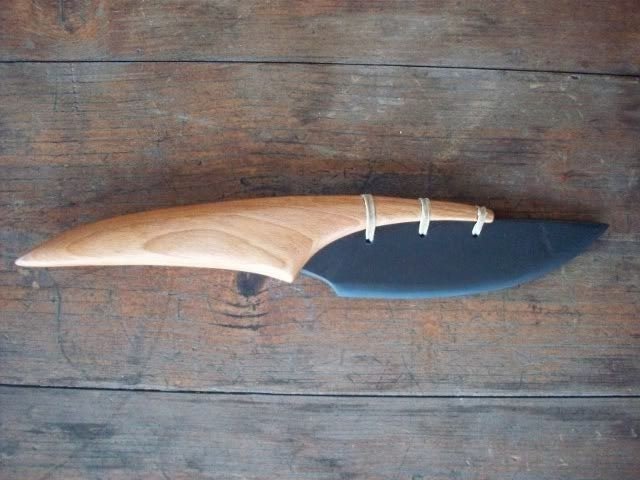 Он вообще не использовался для охоты. Я достаточно каменных ножей (оригинальных) в руках держал. Охотились с луками, копьями. Ловушки делали. Ножом можно только тушу разделать, и то с оговорками.