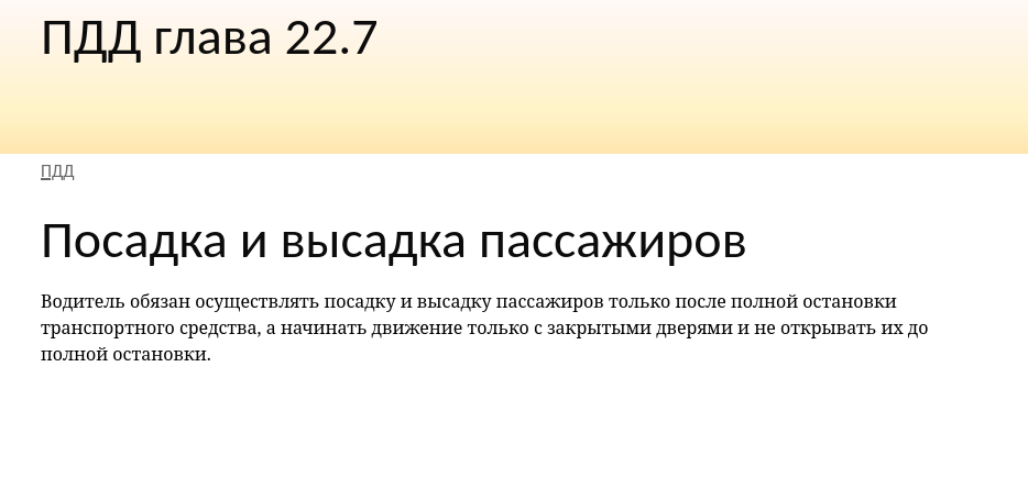 >>1546304 >Нарушал правила высадки пассажиров Обведи кружочком, что-то я тут не вижу фразы "водитель всегда отвечает за любые неадекватные действия пидаров, которых он возит".