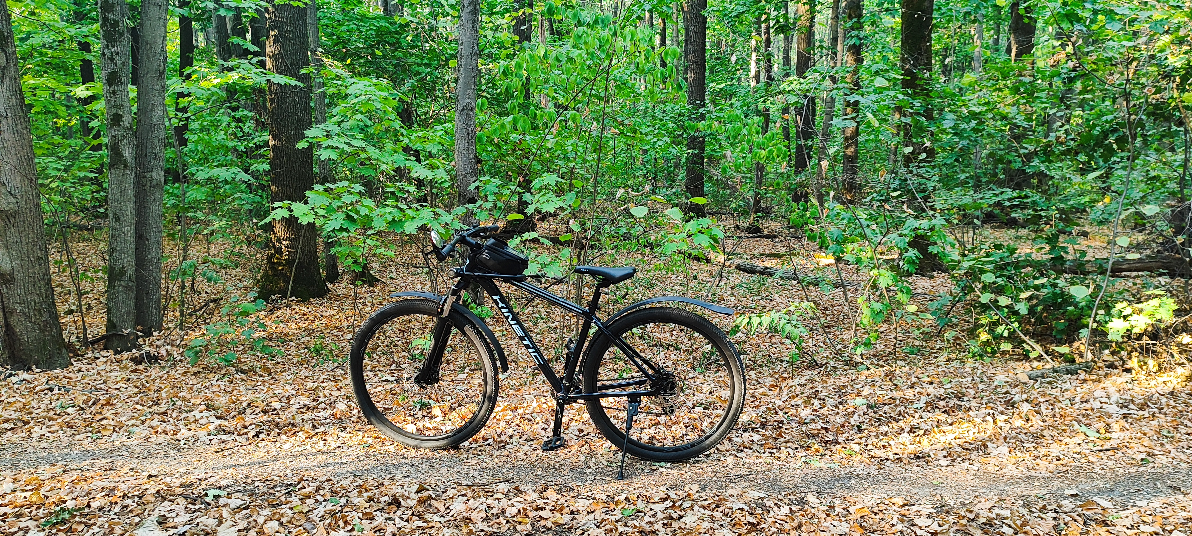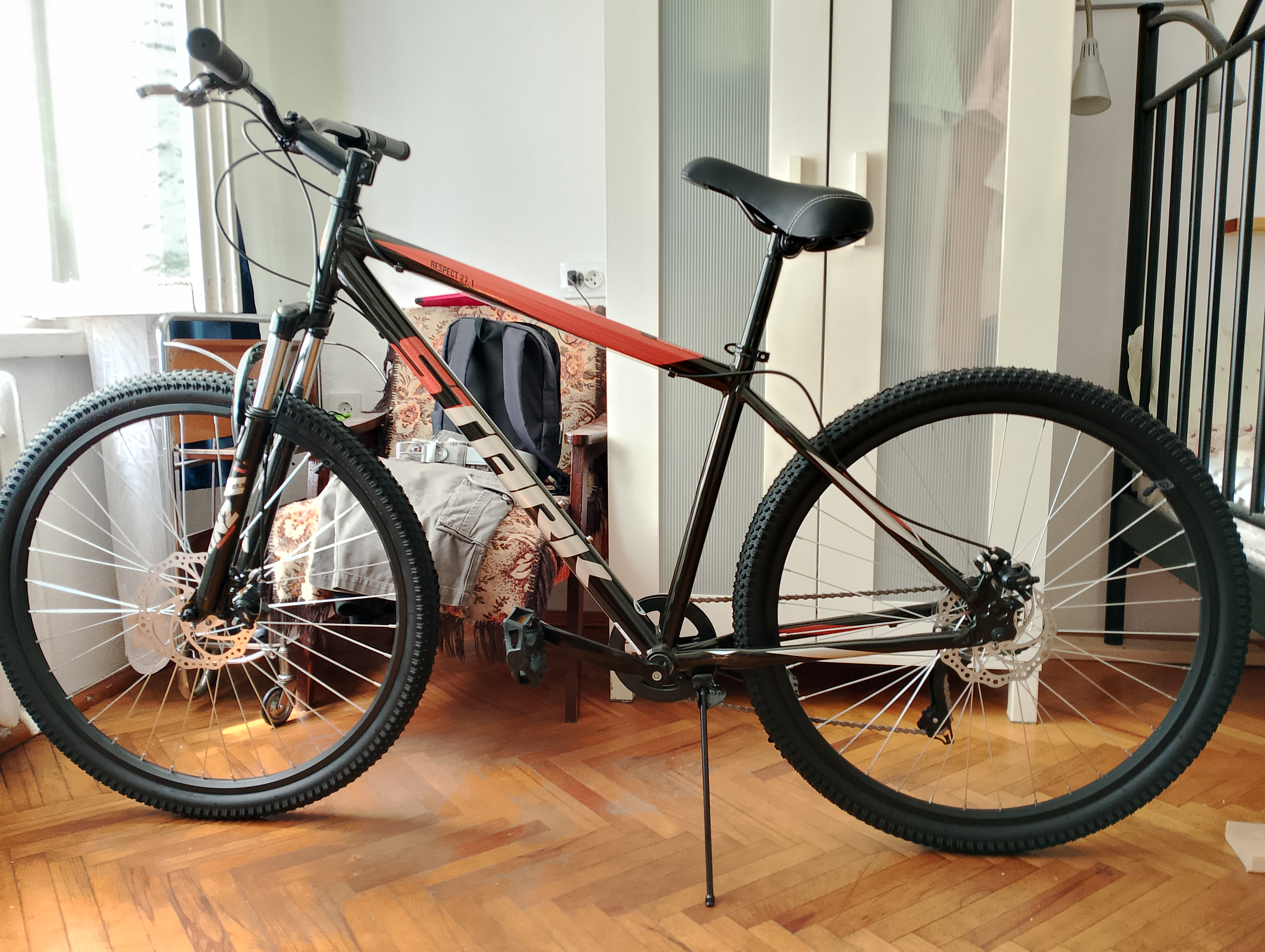 5. Stark Hunter 27.2 (2023) - т.к. рокрайдер оказался оккупирован братом, взял второй трекинговый МТБ, махнул шатуны на Altus с 48 большой звездой и воткнул швальбы Hurricane. Получился хороший трактор, который комфортно катит везде (ну пожалуй только продолжительные говна забивают протектор).