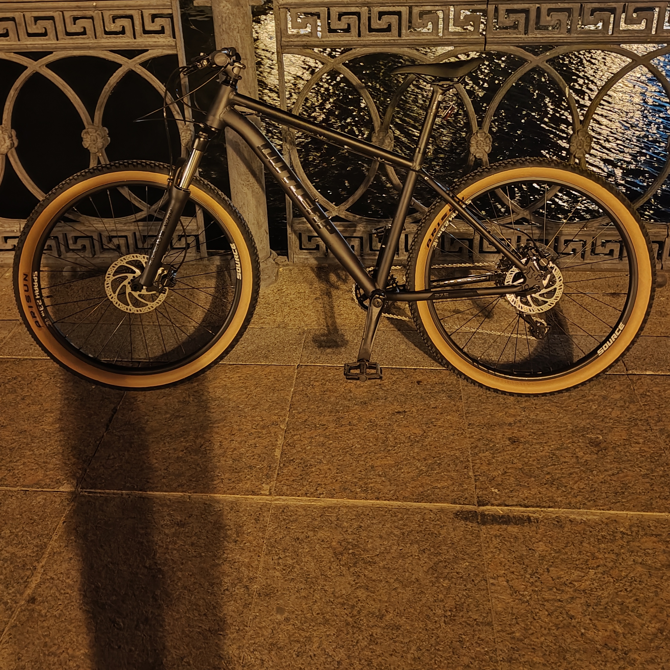 >>1538977 (OP) Шульц БДК. Сразу выкинул бар-енд и механические тормоза. Поставил дуалы и переклюк LTWOO GR-7 + шимановские калиперы Диор. Седло поменял на каучуковый Брукс, готов к ебейшим походам. В планах поменять еще ведущую звезду, 34 зуба мне мало - поставлю 36 или даже 38, пока не определился. Над рулем тоже подумаю, м.б. поставлю менее широкий. Из проблем у Шульца отмечу крайне уебищные колеса с завода. На одном было неслабое яйцо, на втором восьмерка. Все исправил, но осадочек остался. Да, начитался про плохое ЛКП, ждать не стал и сразу передний треугольник и рулевой стакан затянул в бронепленку, чтобы потертости от сумок не так сильно бесили. В целом доволен, получился приятный хромолевый МТБ с бараном, комфортный и со стилем.