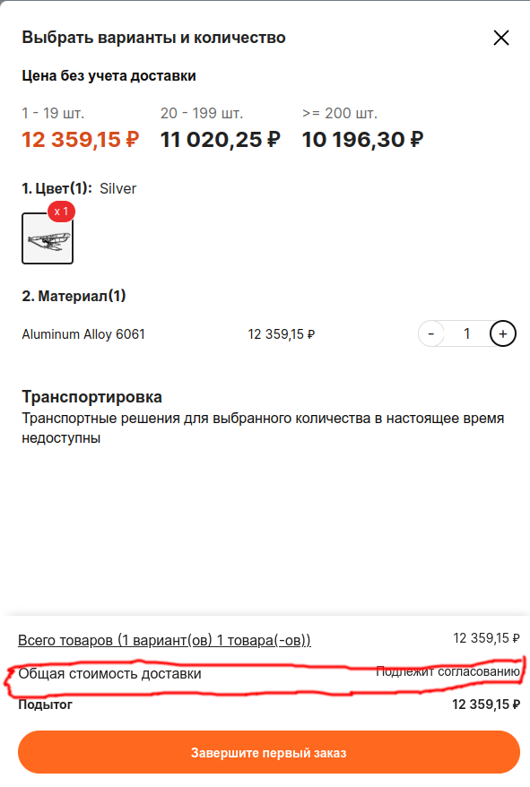 >>1545686 Чел... это не алиэкспресс, там нет "встроенной" доставки. Перед покупкой надо писать продавцу, говорить что хочешь купить, он тебе выставляет счёт на оплату.