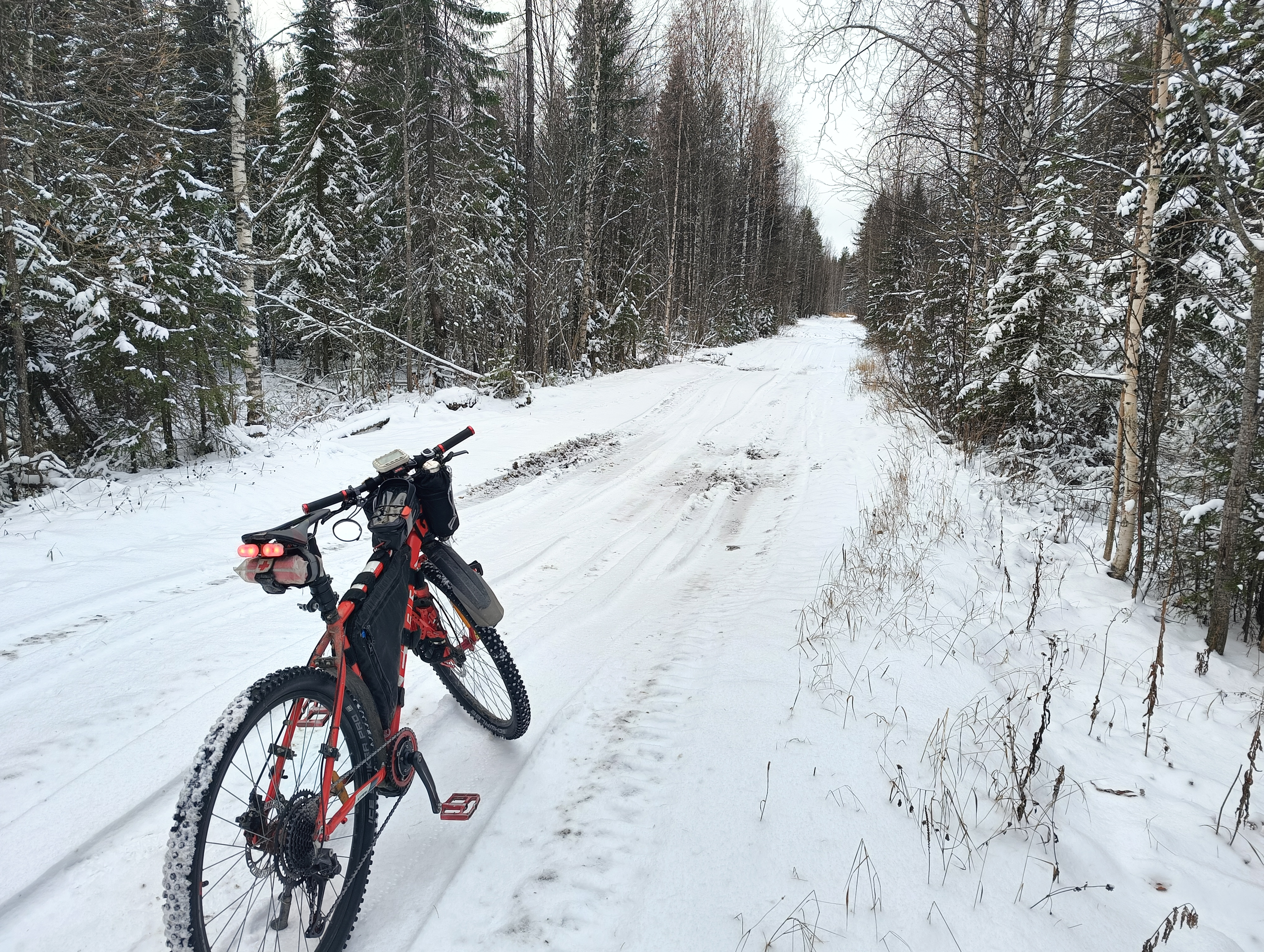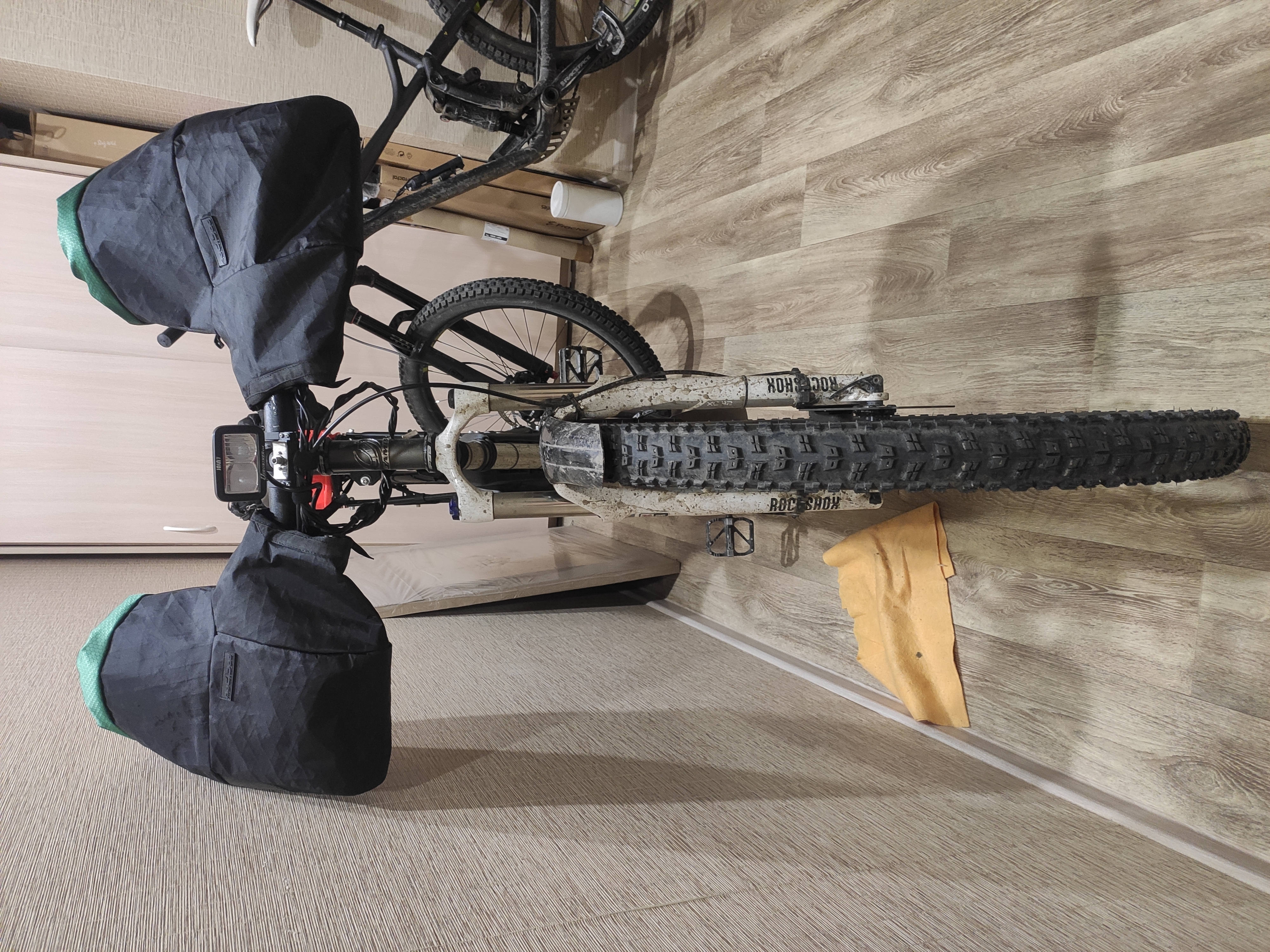 В остальном по компонентам - взял тормоза от ZTTO с роторами 2.3мм. НЕ БЕРИТЕ ЕБУЧИЙ ZTTO. Тормоза хуй отрегулируешь - колодки почти не откатываются, зазора нет, в итоге колодки постоянно легонько трутся о ротор, при том на пешей скорости трут с отвратительным скрипом. Буду менять на другие (TRP, вроде, делают именно под 2.3мм, да и я знаю, что у них откат нормальный - на подвесе Slate T4 стоят). Покрыхи на удивление неплохие, на асфальте накатистые (40PSI сзади). В поворотах держат неплохо, но вот буквально сейчас чуть не уебался, когда заехал на грунте на длинный и узкий бугорок - переднюю покрыху сорвало с него, хотя там всего 20PSI. А, да, и гудишь как сука на асфальте, но это уже проблема окружающих :) Багажник тоже пиздатый, прям крепкий, жоски. West Biking бренд на али.