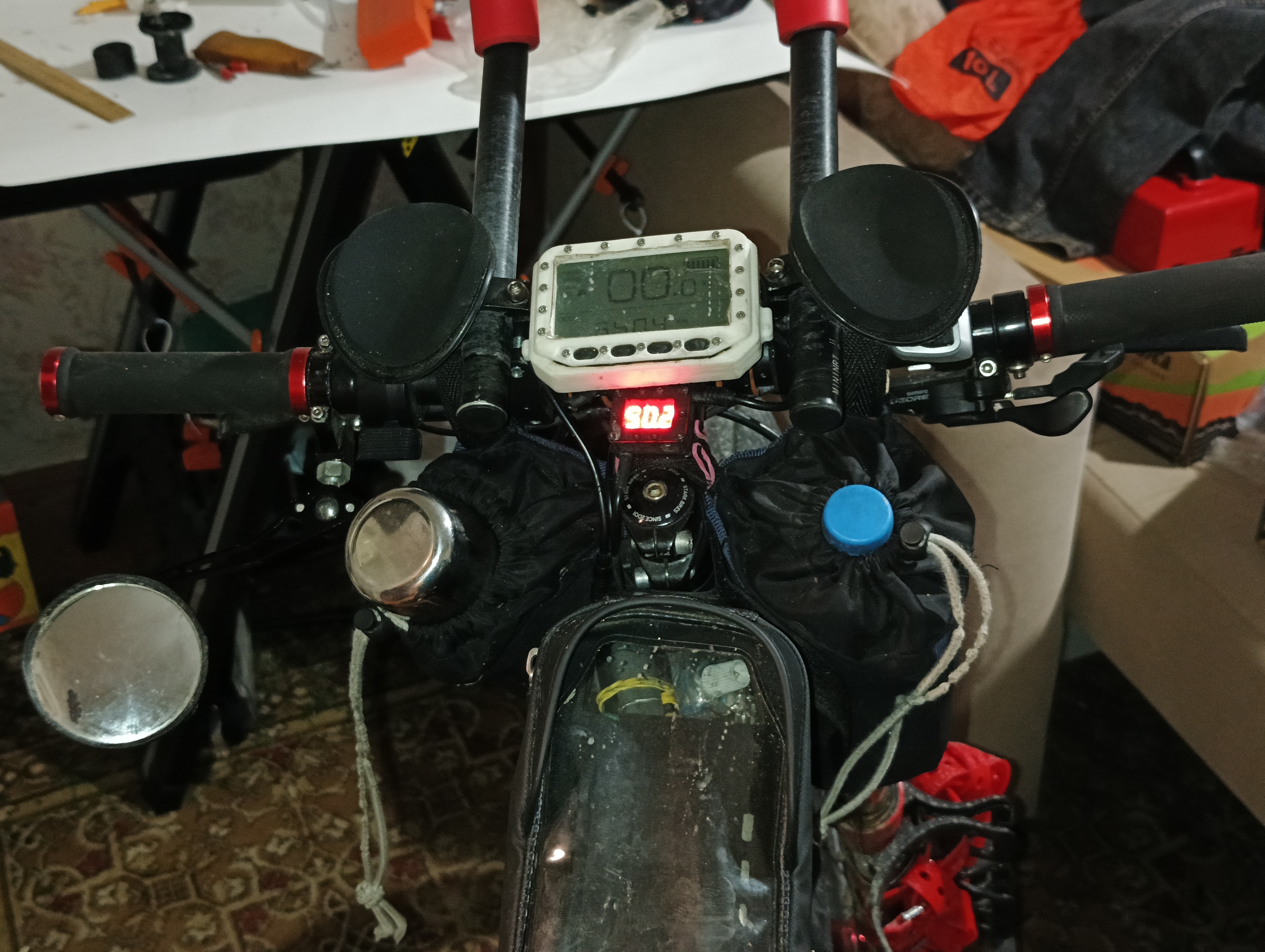 >>1546049 А куда ещё? Там он органичнее всего смотрится. В треугольнике уже места нет, на верхней трубе ставить - полный кринж, на трубе багажника тоже не поставишь - будет мешать установке сумки.