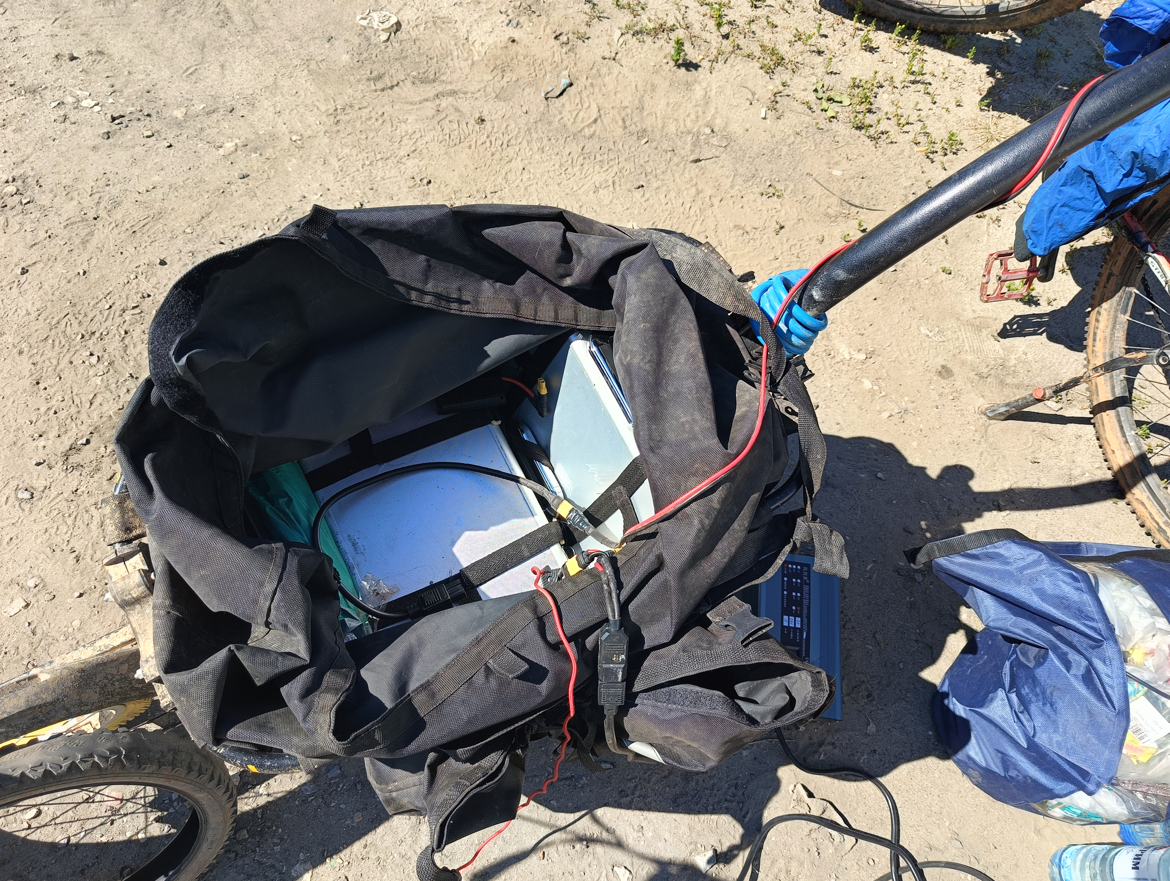 Как закрепил такую батарею на раме? Шатается? Что у тебя за странная штучка на подседельном штыре висит спереди? Что за прожектор у тебя? Почему заднее, а не переднее?