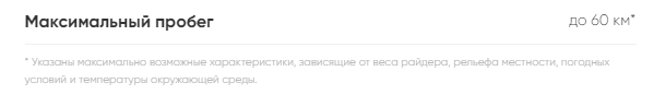 >>1560571 Все эти официальные пробеги - маняцифры в идеальных условиях, типа ребенок 30 килограмм едет 10км/ч с горки с ветром в спину в 25 градусов тепла. О чем тебе прямо и написали, что это самый максимум, который ты можешь выжать. Точнее там 60 заявлено, хз откуда ты 80 взял. Хочешь больше, или крути педали, или газульку не жми резко + не разгоняйся больше 35. Ну и у нормальных кур есть второй аккум, который стоит на зарядке, пока выкатывается текущий.