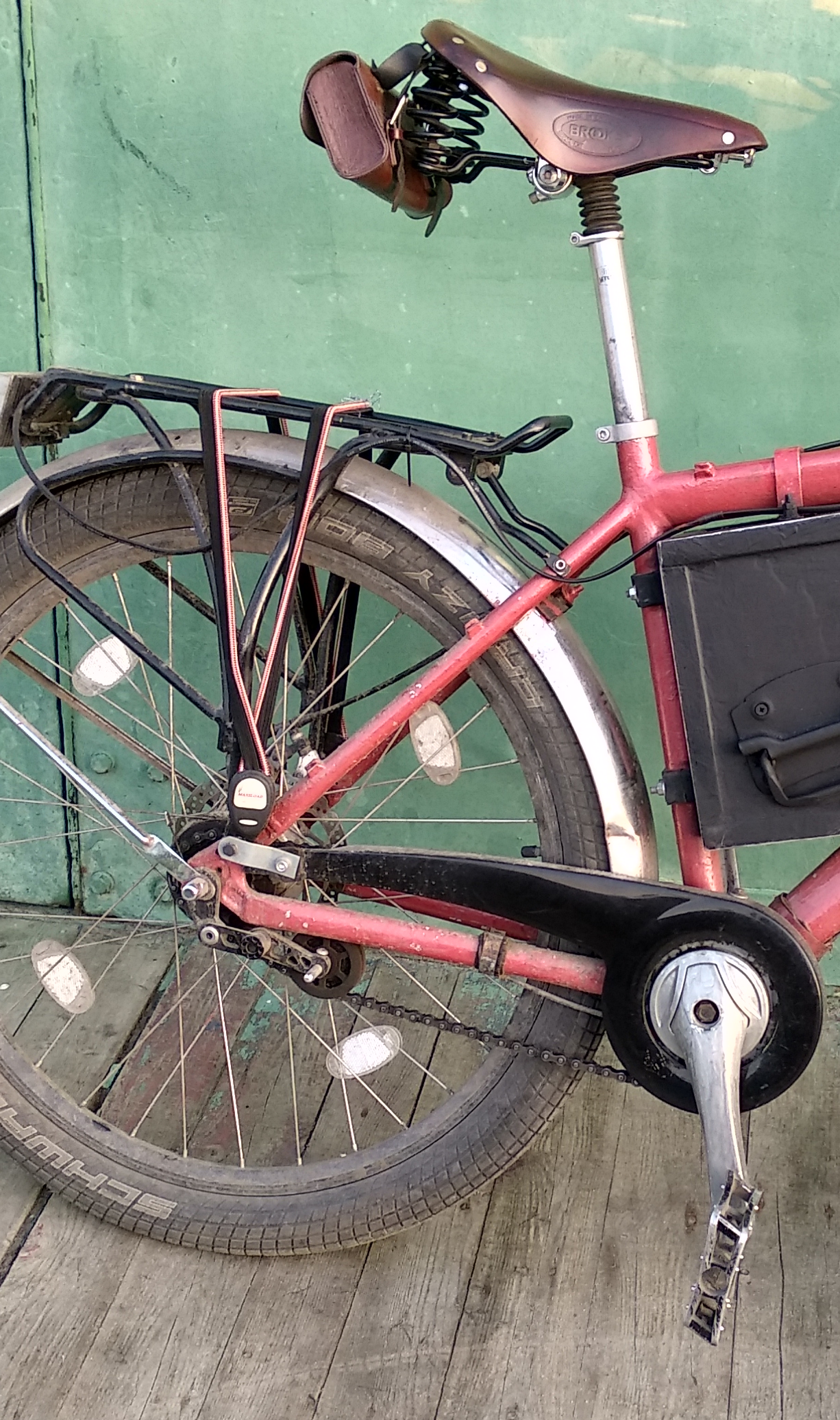 >>1546198 >Как закрепил такую батарею на раме? Шатается? Комплектной рельсой. Тащемта я наконец-то электричку сделал, потому что мне этот аккум почти бесплатно достался :) Я там только BMSку поменял и всё. Да, шатается вбок, но при езде не заметно практически. >Что у тебя за странная штучка на подседельном штыре висит спереди? Это я для навесного замка держатель запилил, он туда встёгивается внатяг и не дребезжит при езде. В багажной сумке его вообще возить противопоказано - он со временем от ударов дырявит сумку на дне. >Что за прожектор у тебя? sl.aliexpress.ru/p?key=Z3Rgrr7 СТГ есть, питается прямо от 48В. Включаю всегда перед движением. >Почему заднее, а не переднее? 1) Вилку жалко, её и так менять пора. Ну и неподрессоренная масса выросла бы в разы. 2) На слабом грунте лучше толкать, а не тянуть, гравиек у меня тут хватает на маршрутах. 3) Сзади я въебал обод MTX39 со спицами 12G, теперь могу на багажнике хоть людей катать. 4) Дёргать перед удобнее, частенько приходится из-за качества местных дорог.