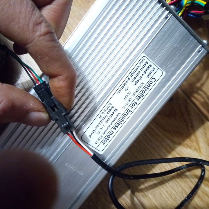 >>1567497 И сразу совет. Клеммы у силовых отгрызай нахуй и паяй что то типа амассовких xt60 или xt90, если нужен искрогаситель. А фазу перепаивай на mt60 или даже xt150, если место есть. Я бы ещё посоветовал перепаять сами эти провода внутри контроллера на более толстое сечение, но это уже заеб по желанию, хотя велик стал ехать значительно шустрее и проводка перестала перегревается из за форсирования движка.