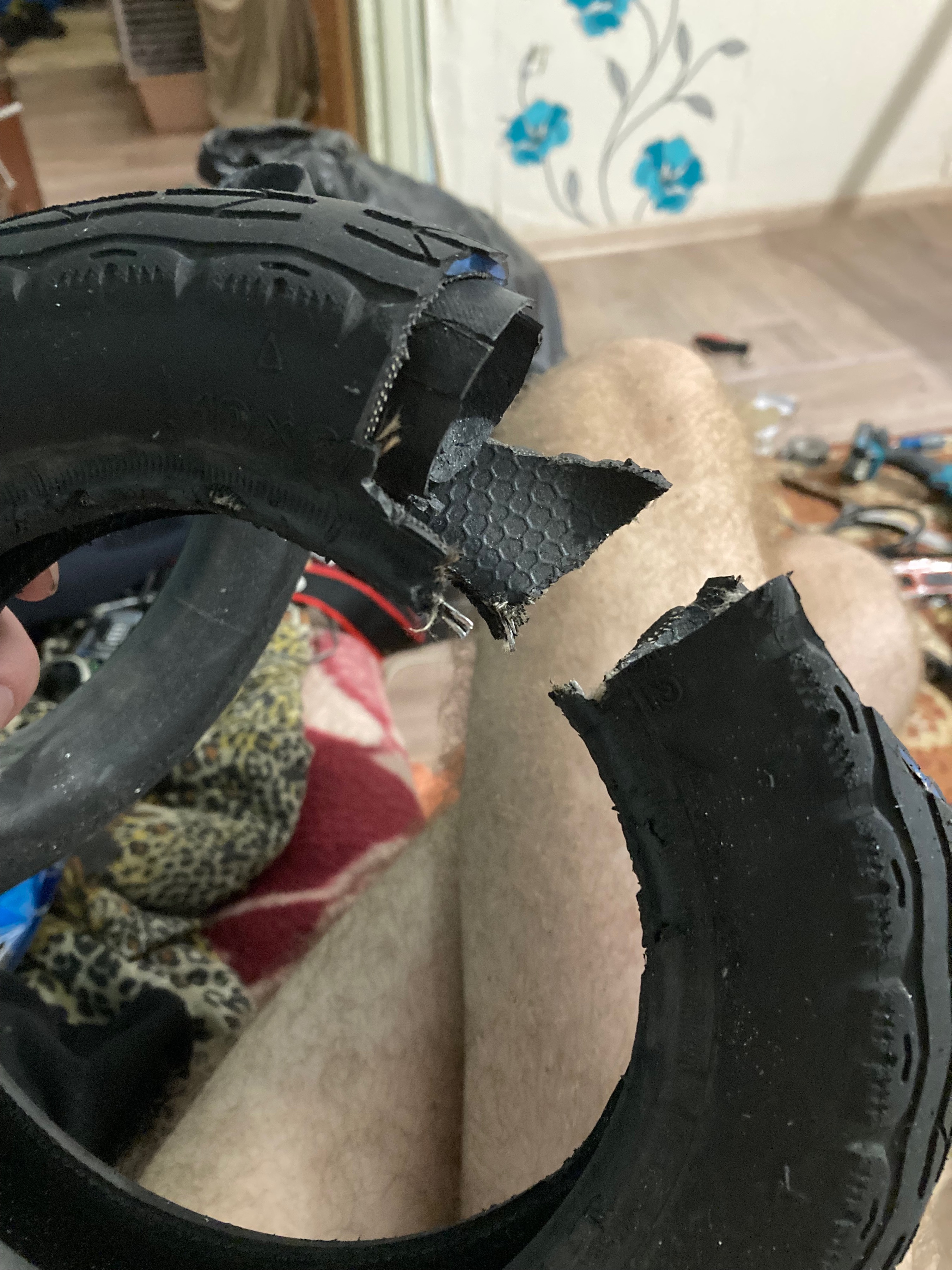 Когда я попытался сделать это с задним колесом я переломал и погнул все отвертки, потом я уже ебанулся окончательно, разрезал шину ножом и взял сверло по металлу просверлил нахуй проволку на шине.