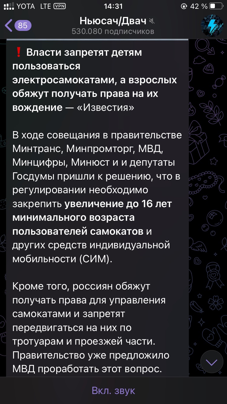 Ну и ограничение скотокатов до 20км/ч в ДС превращают их в говно без задач. Такое ограничение и уменя сейчас в колесе, скотокат нахуй не нужен. Да ещё и время в пути сильно вырастает. Специально засекал: до метро на 25км/ч доезжал за 3мин, а сейчас за 7.