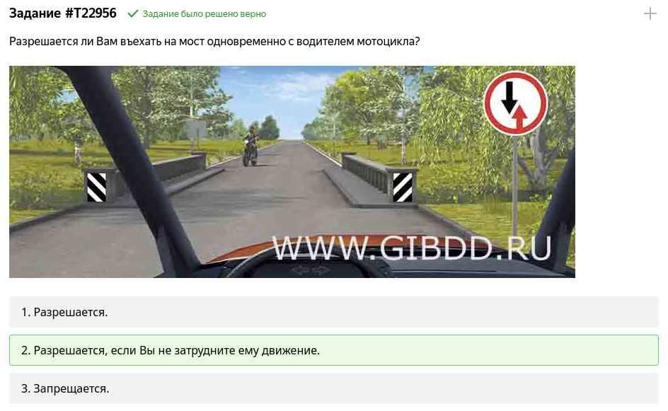 >>1560722 >езда двух тс в одной полосе запрещена Я десять лет назад на подобном вопросе засыпался на тестовом экзамене в автошколе. Был пикрил рисунок, с вопросом типа "может-ли мотоеб тут ехать по правилам?", и я выбрал вариант "нет", т.к. действие происходило на мосту, в зоне повышенной опасности, где и обгон запрещен, и аварийная стоянка, ну и всякое такое, да и вообще я знал по другим билетам, что обычно лучше перебдеть. Хуй там. Зову препода, спрашиваю кик тик?, а он говорит, мол, смотри тут места дохуя(нет), типа раз мотоеб вклинился, значит и норм, а на мост вообще поебать. И ладно бы там места было до жопы, будто под две полосы(я много раз видел, как едет траффик по снятому/свежеположенному асфальту без разметки - никто не щемится впритирку, а наоборот стараются держат боковую дистанцию в непонятной ситуации), там не то чтоб двум легковушкам, там даже полутора корпусам по ширине визуально не влезть, но мотобрату можно.