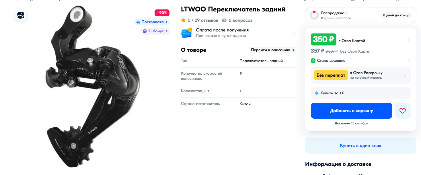 так-то почти 800 https://ozon.ru/t/5PAx5e ток он на 9ск, а в спайки кассета на 8 это +еще столько же за кассету. или на 8ск кассете тоже пойдет? шифтер ведь на 8 скоростей