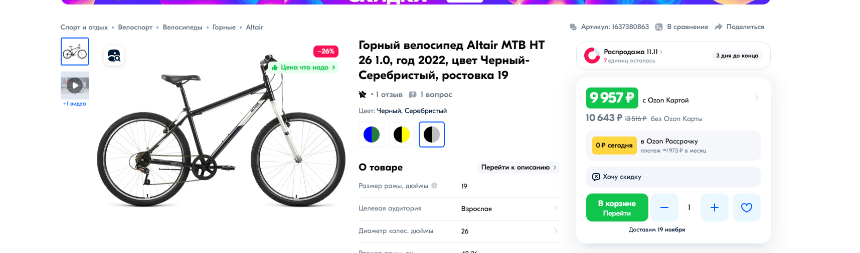 2) Altair AL 26 VV - https://ozon.ru/t/E7ARKQ3 (алюминиевая рама, стальная вилка, трещотка 7ск., вибрейки. Для любителей ретро мтб.)
