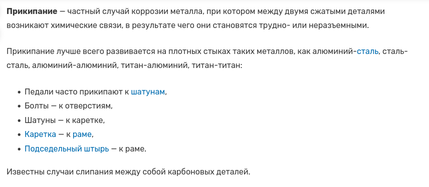 >>1560149 >Масло или какое-либо скользкое говно попало в раму Сынок, подседельный штырь должен быть всегда смазан спецсмазкой от прикипания. Масло попало в раму. Пиздец. Поколение пост-егэ.