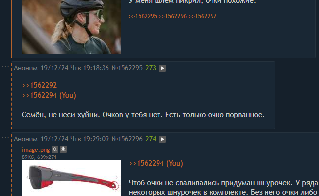 >>1562297 >Нахуй вообще очки Ну, ловить всех мимолетящих мошек в глаза - плохая идея. А их особенно дохуя бывает в конце лета - начале осени, прямо столбы целые этой мрази поднимаются, все ебало в них. Попадут в глаза - не обрадуешься. Несколько раз ловил на очки живность покрупнее, стрекоз, разок саранчу, разок шмеля. Ну нахуй. Пыль, опять же, песочек. Не, очки тема, они нужны.