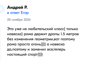 Просто были мысли что велик и такое не выдержит. Типа, когда с полуметра дроп делаешь, там никакой перенос веса физику не обманет, всё равно 88 килограмм приземляются, и в такие моменты хочется быть уверенным в велике.