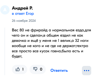 >>1550845 (OP) Ананасы, я конечно понимаю что тут все наносеки, но блядь, какие нахой нищевелы по 20-30к? Я сюда зашел присмотреть что-то за 5к, а тут такая жесть. Блядь, мне просто надо ездить по лесу я не кладмен, искать и фоткать интересные деревья Я НЕ КЛАДМЕН!. Сам по себе начинал с совковых велов так что непритязательный, главное чтобы работал и не ебал мозг миможадныйскуфидон