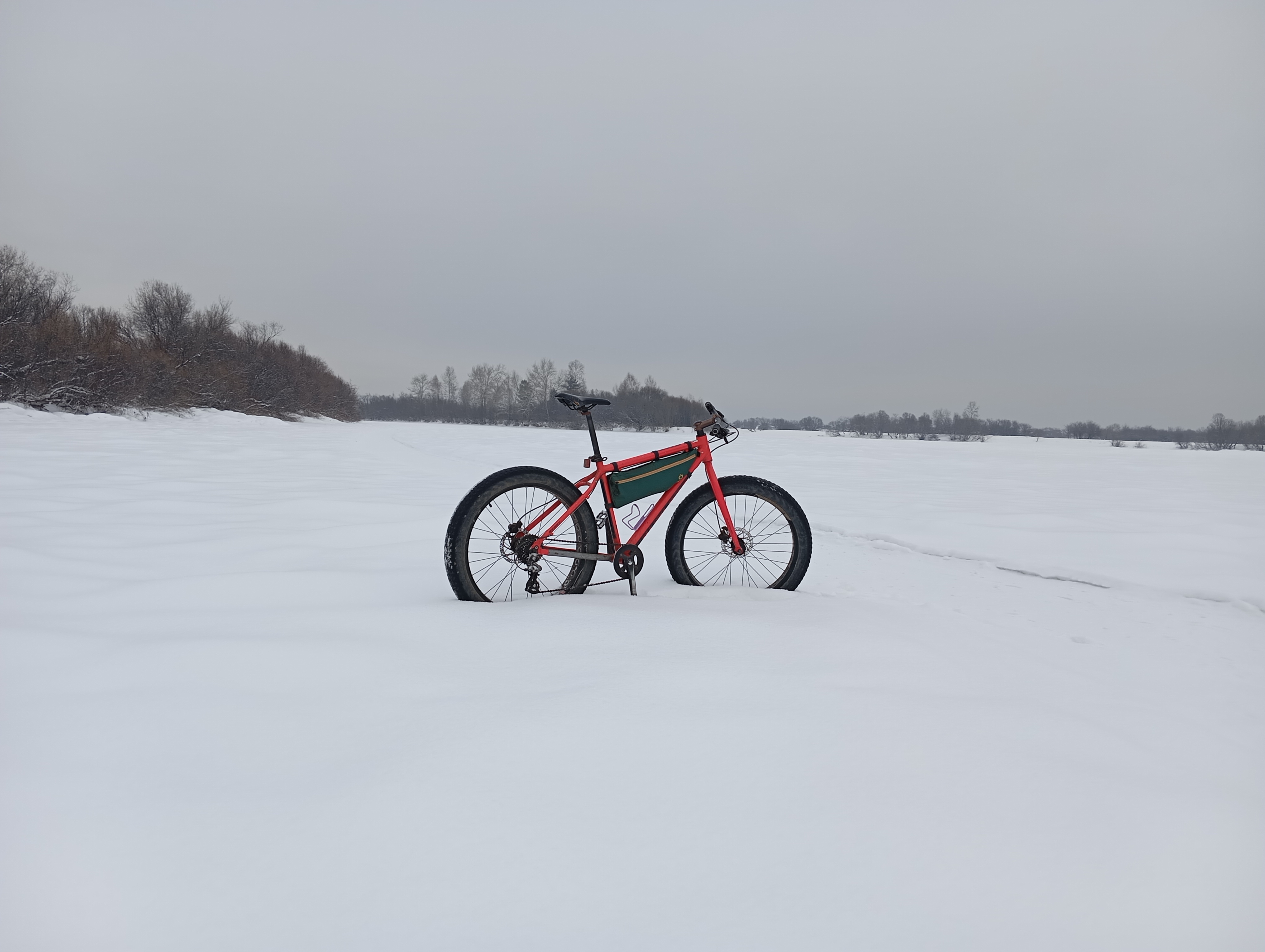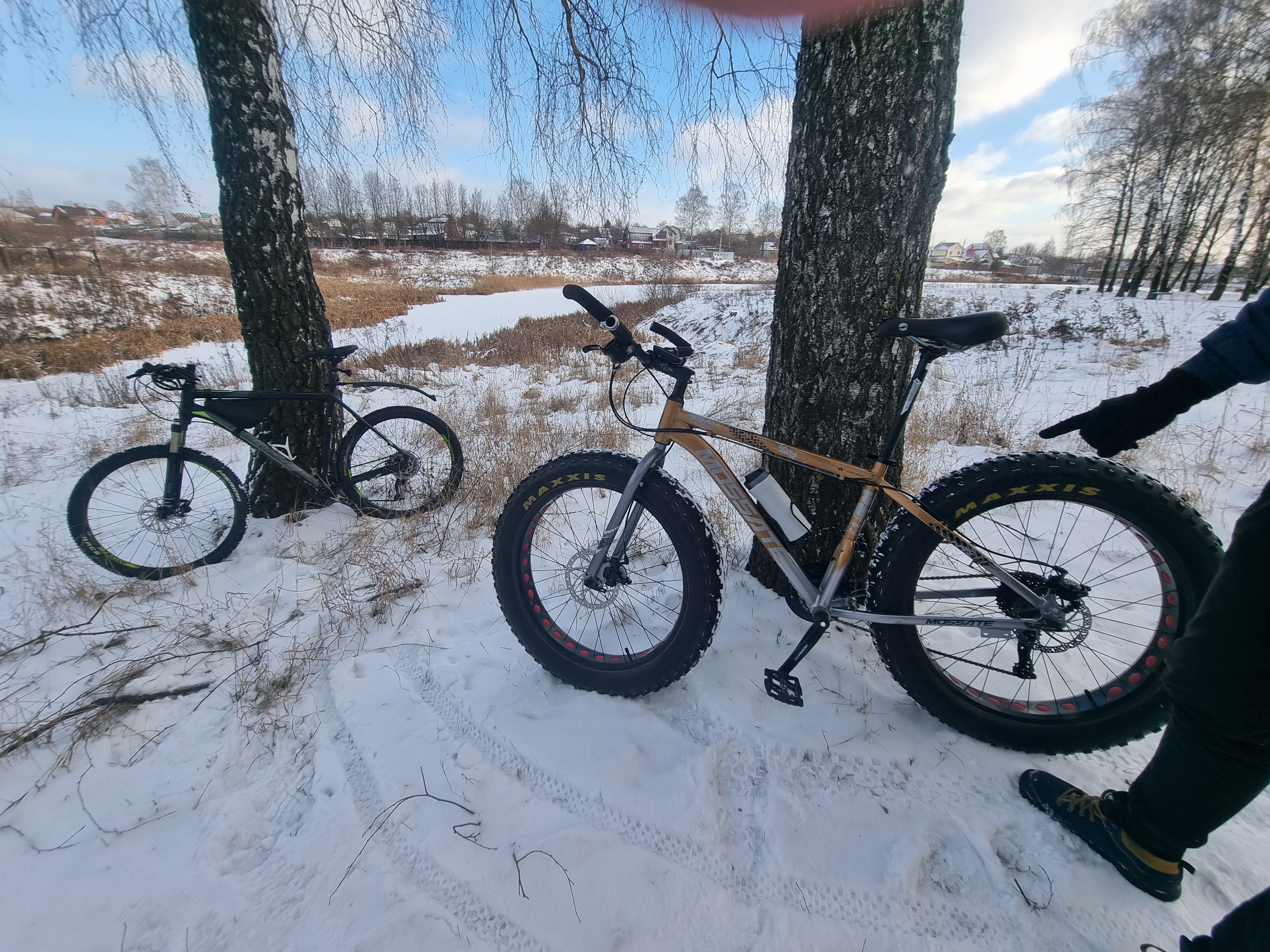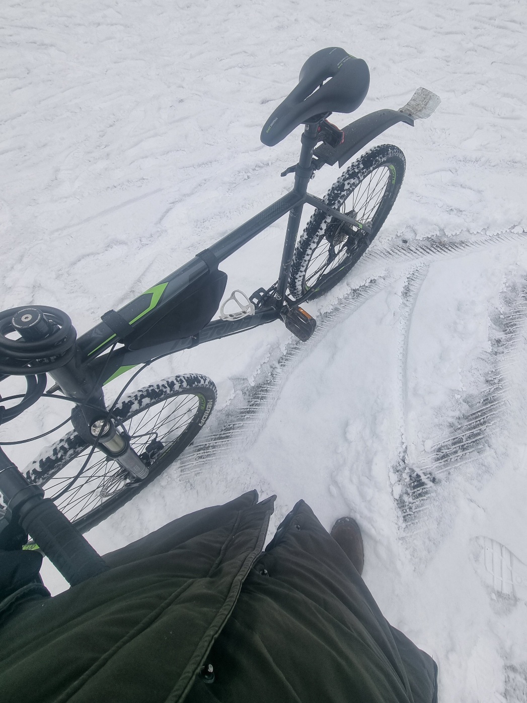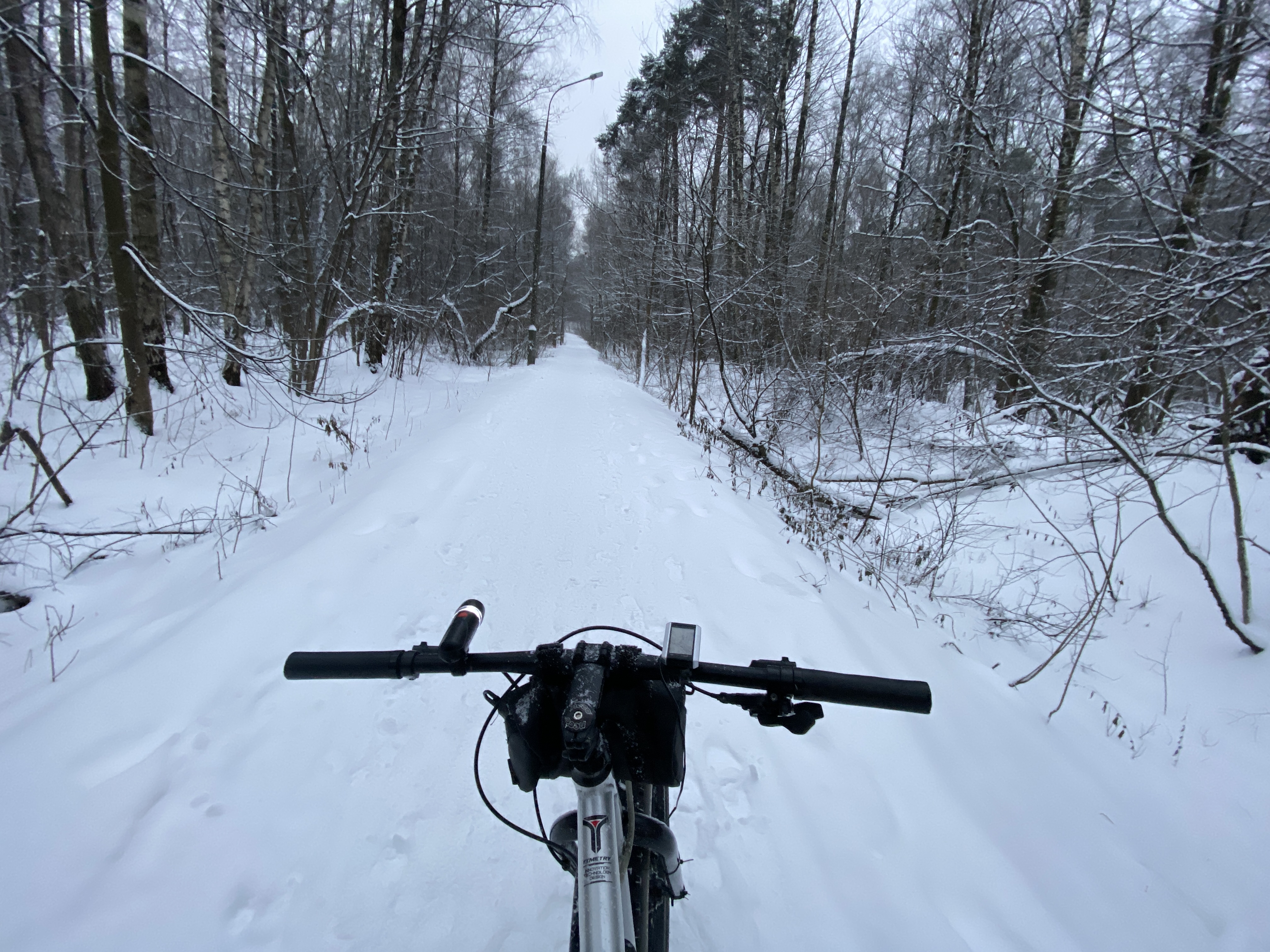 Не говоря уже что чтобы ехать по рыхлому снегу постоянно приходится кидать свой свес по велосипеду, от чего руки устают.