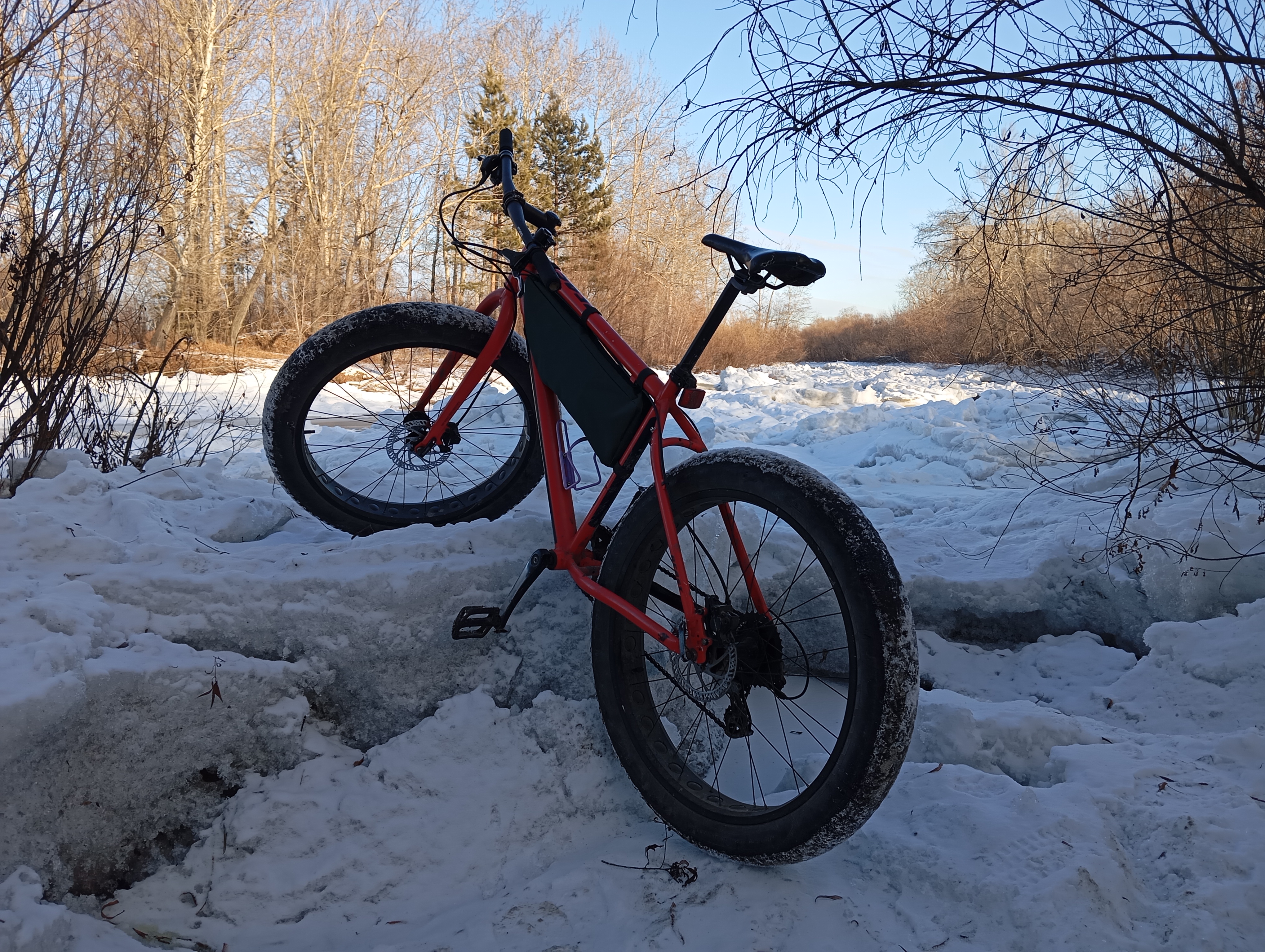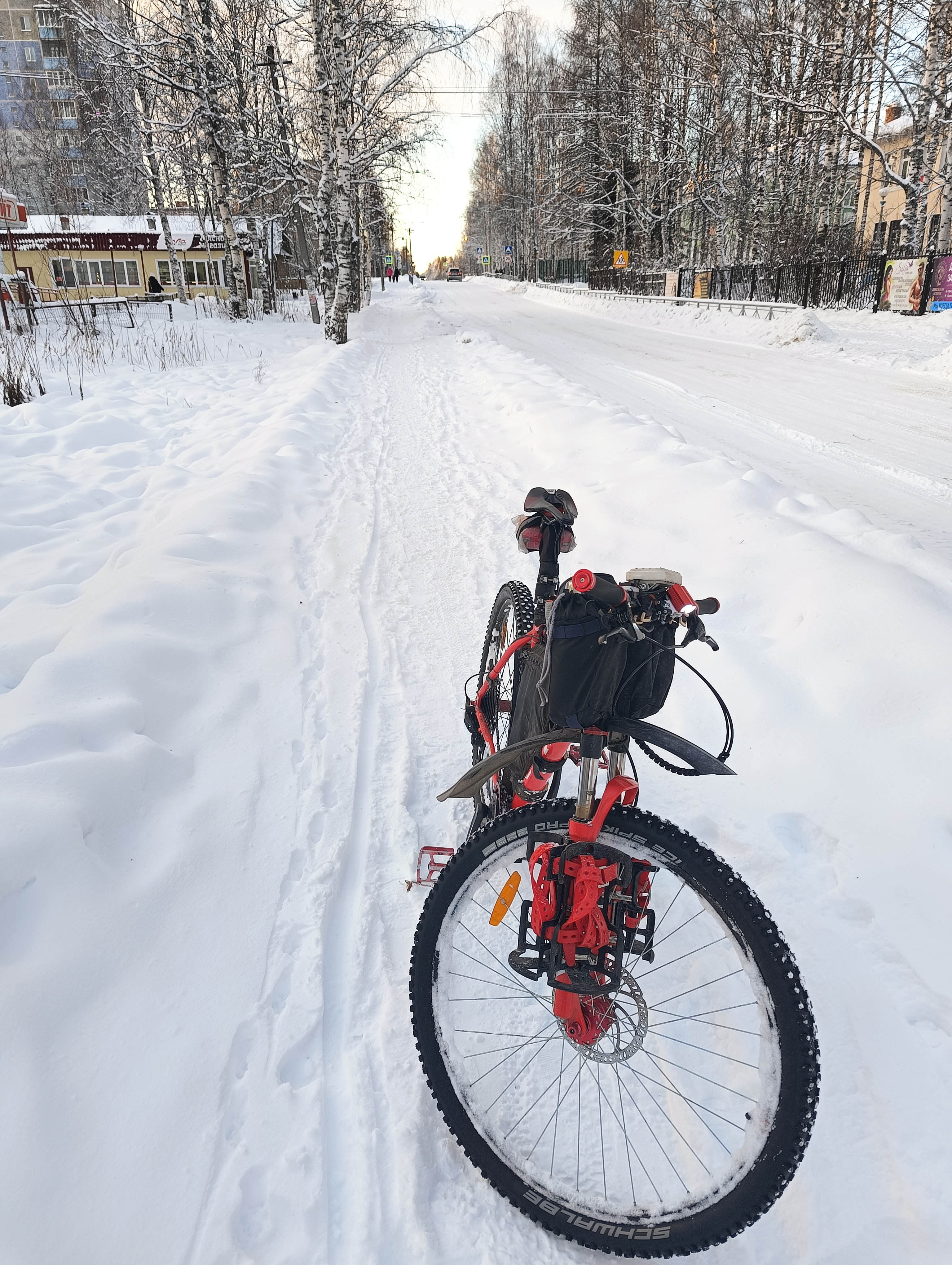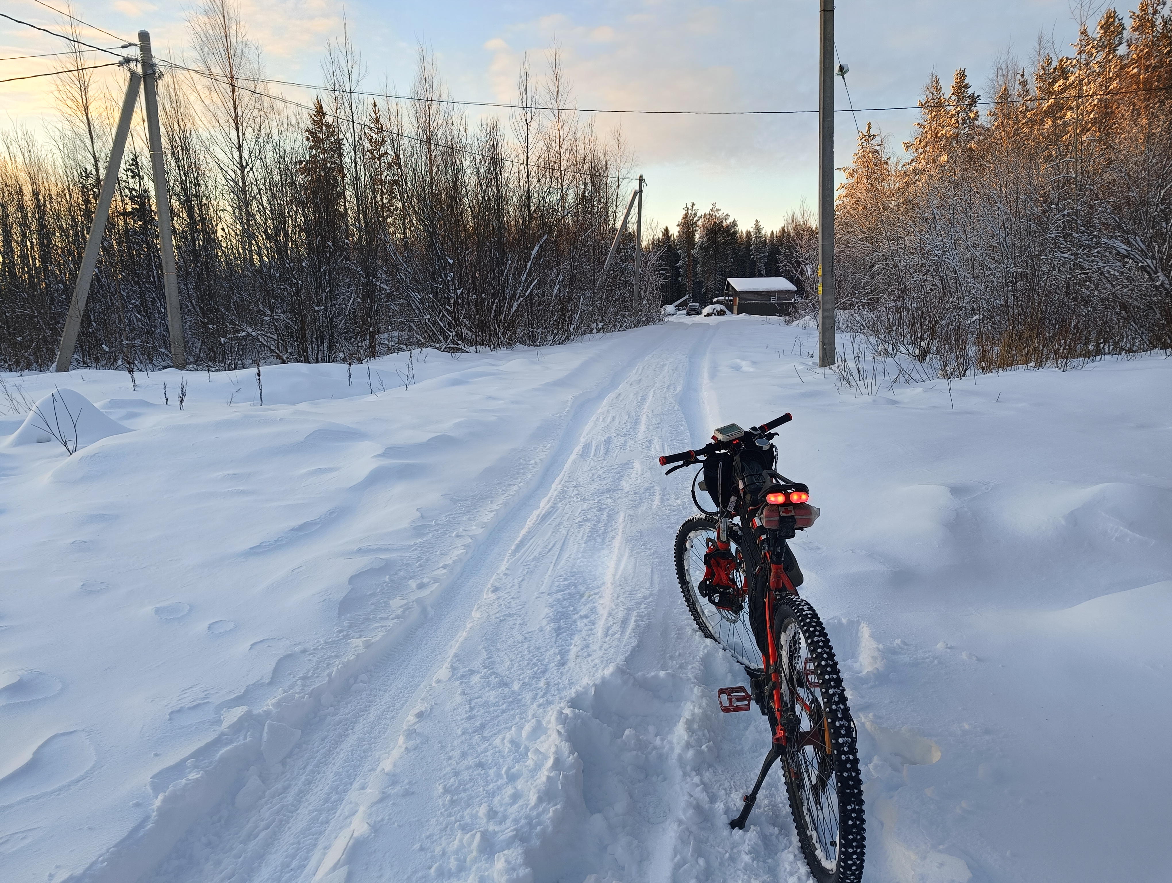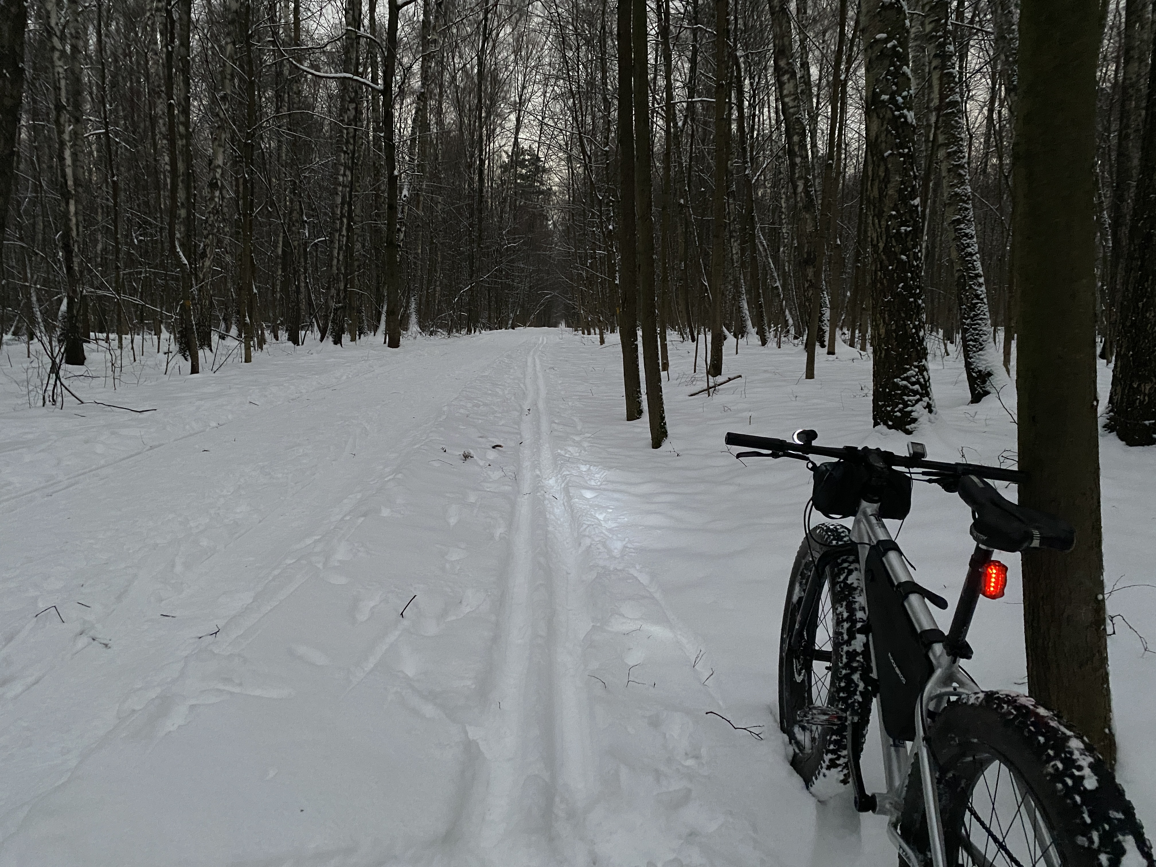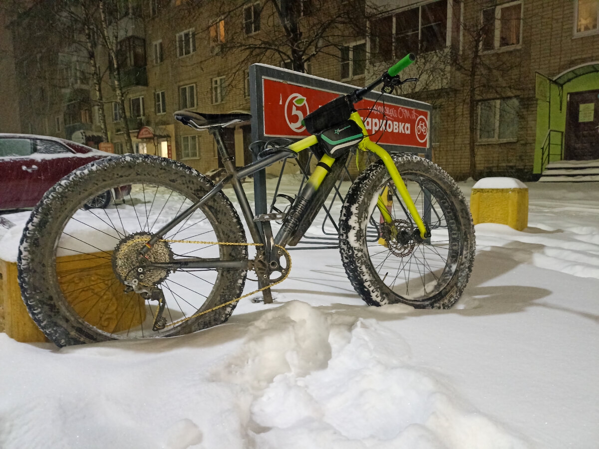 Не говоря уже что чтобы ехать по рыхлому снегу постоянно приходится кидать свой свес по велосипеду, от чего руки устают.