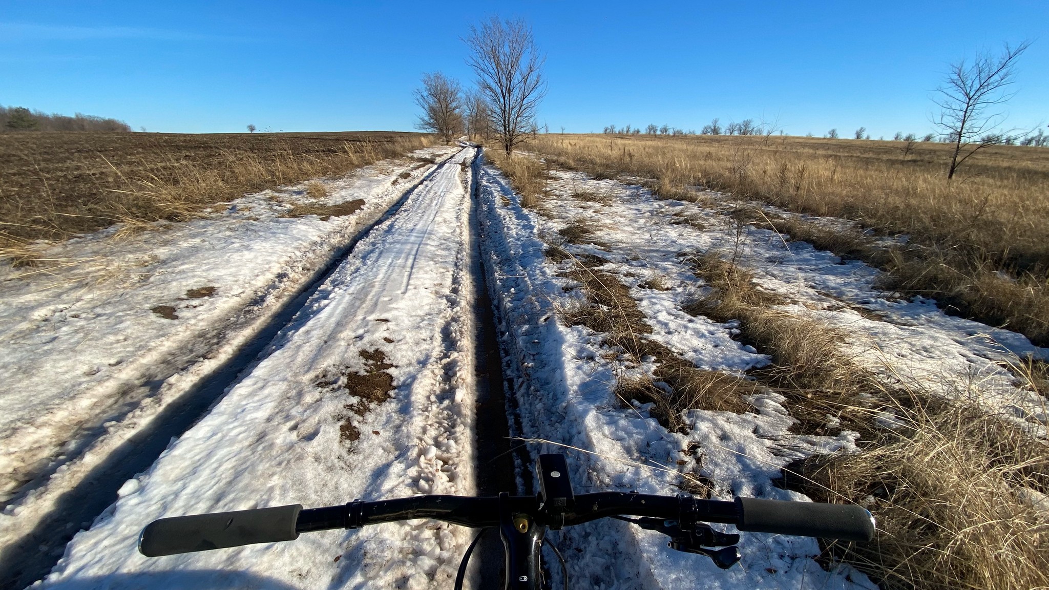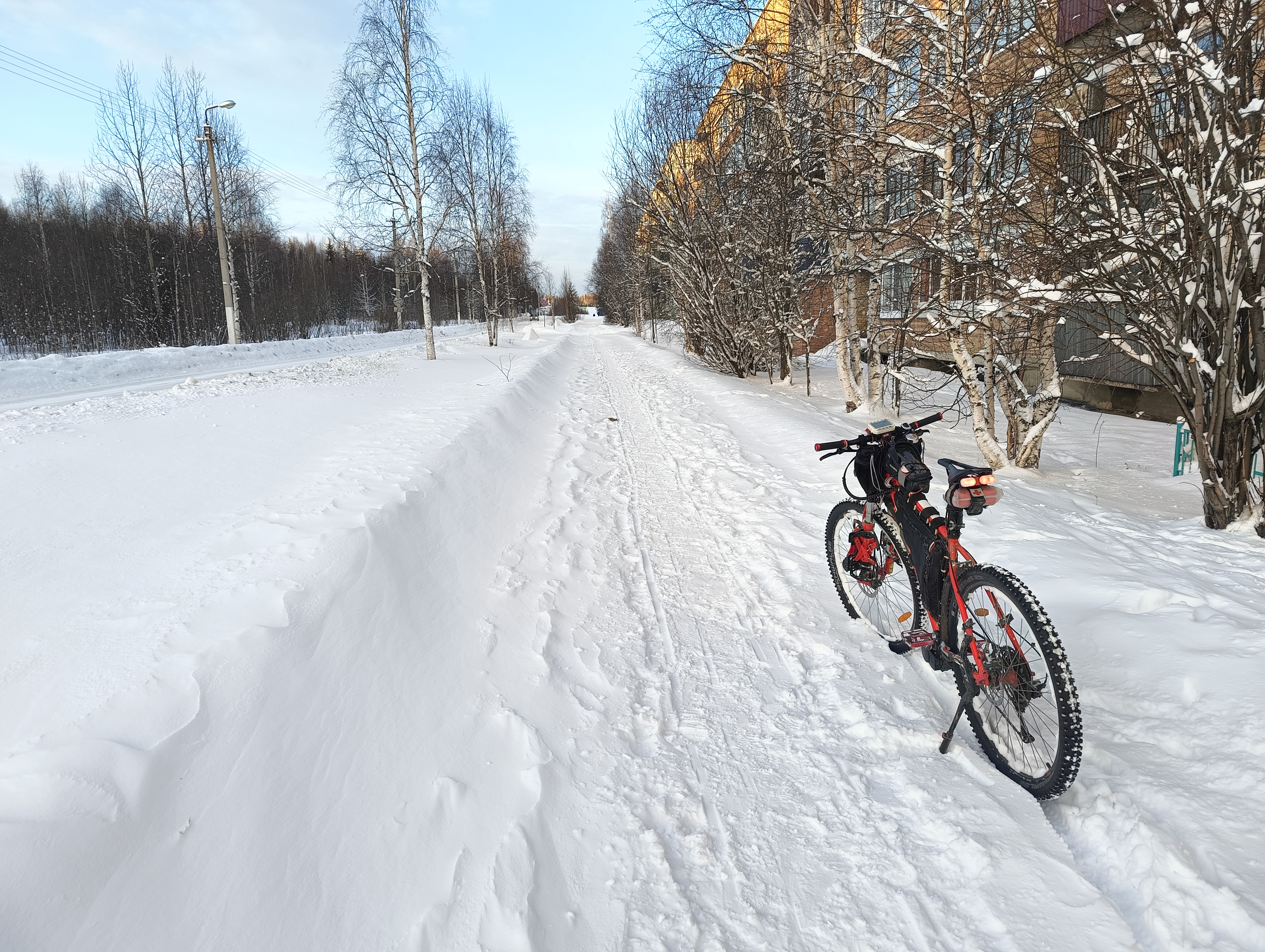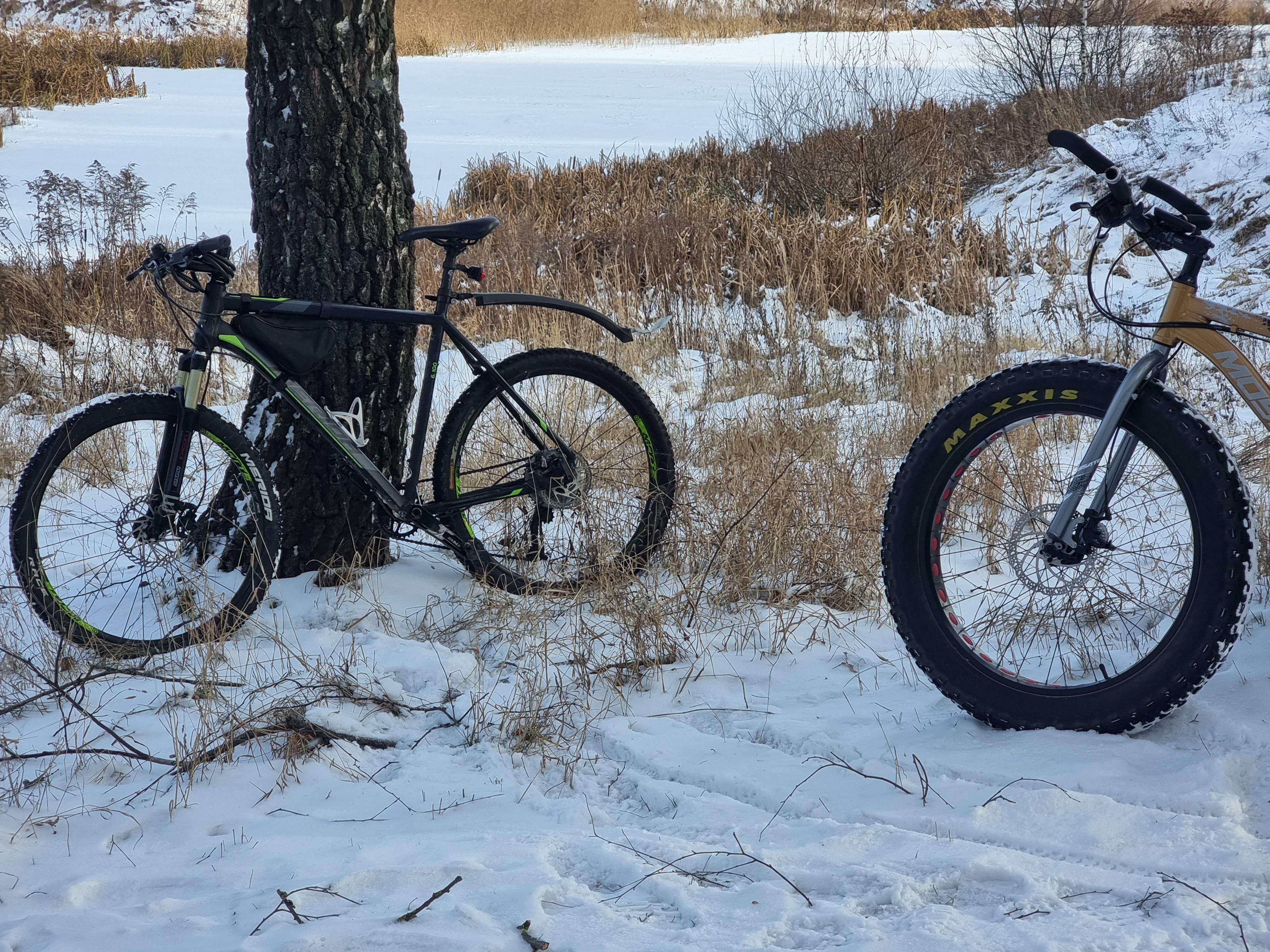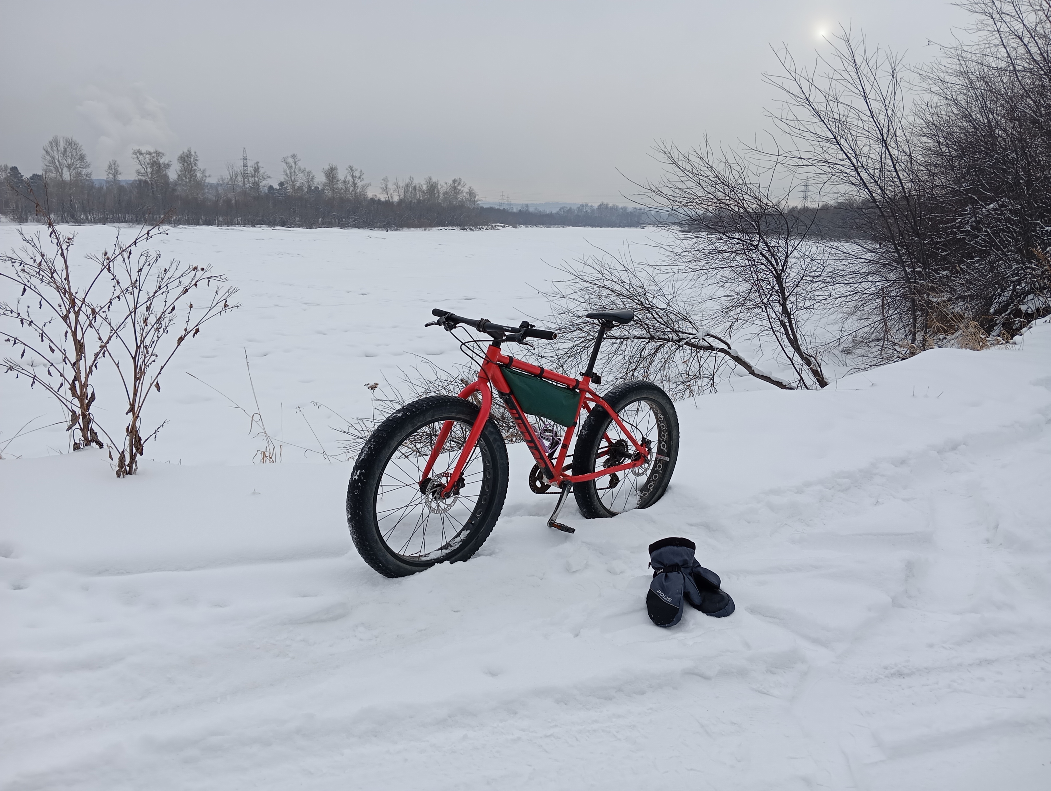 Не говоря уже что чтобы ехать по рыхлому снегу постоянно приходится кидать свой свес по велосипеду, от чего руки устают.