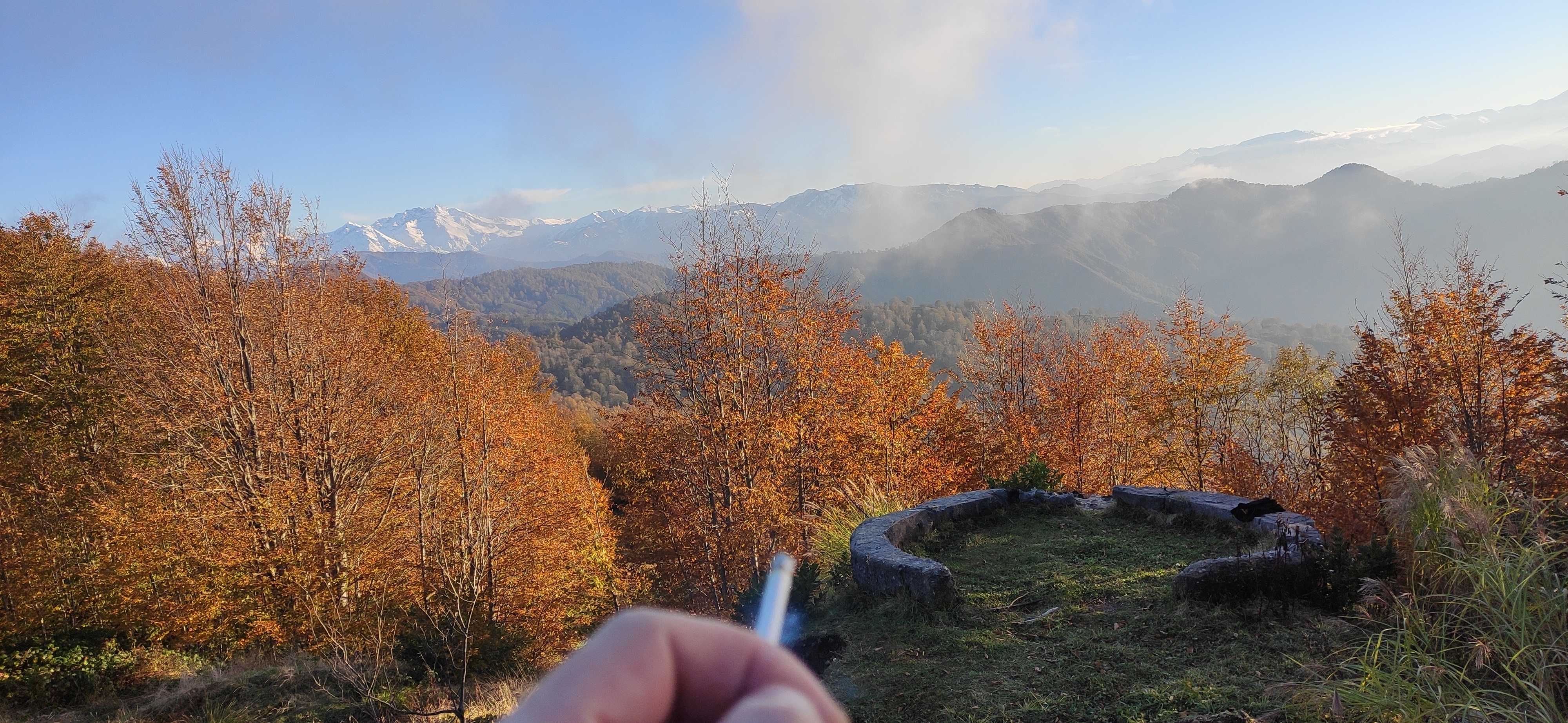 У нас сегодня ахуенная погодка и 16 градусов, спонтанно катанул в горы. Дорога и направление незнакомое, машин практически не было. В итоге приехал в село, тормознул на алее победы у местного ДК, почитал, насладился ревом гусей, заправился яблоками, орехами, и попидорил назад. По пути встретил двух веланов, тянка в беседке приветливо помахала рукой и мужик на шоссере, безучастно матрасивший 15кмч.
