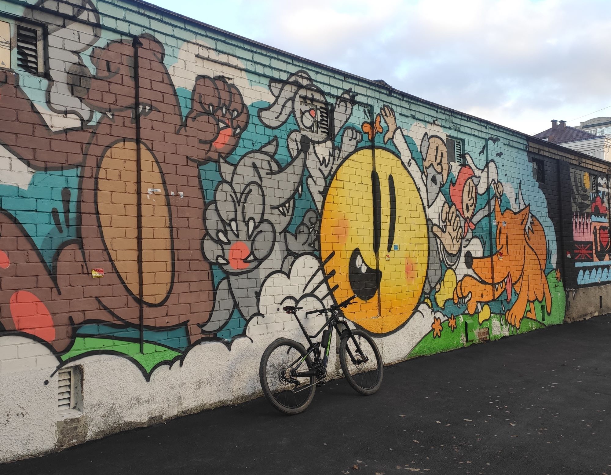 Лампово покатался до пещерок, погодка отпад. Честно говоря немного устал, всё таки вело покатушка это тема скорее про фитнес, а не отдых. Классно всё же заниматься спортом, кататься на фоне природы. На пути домой заехал купить шаурмы, и сделал фото своего велика.