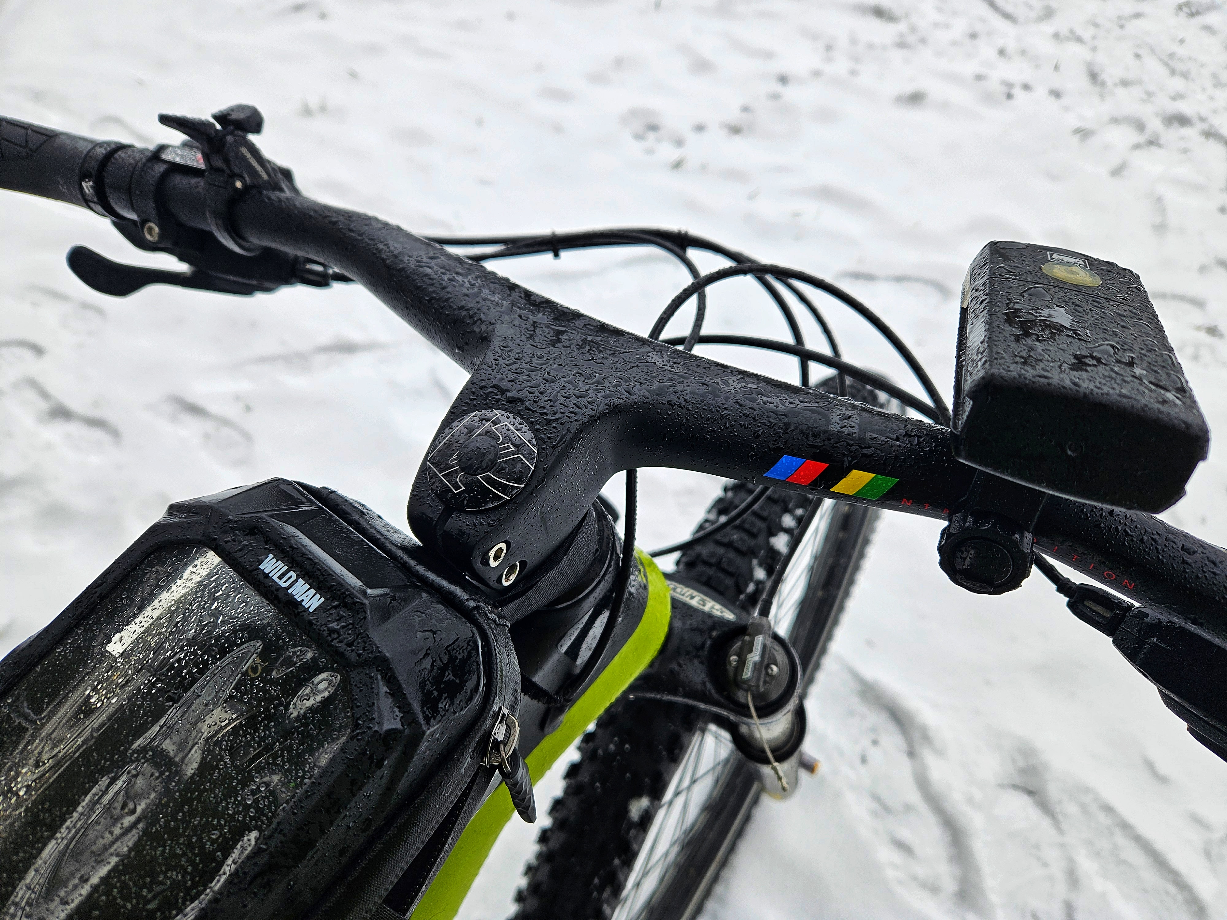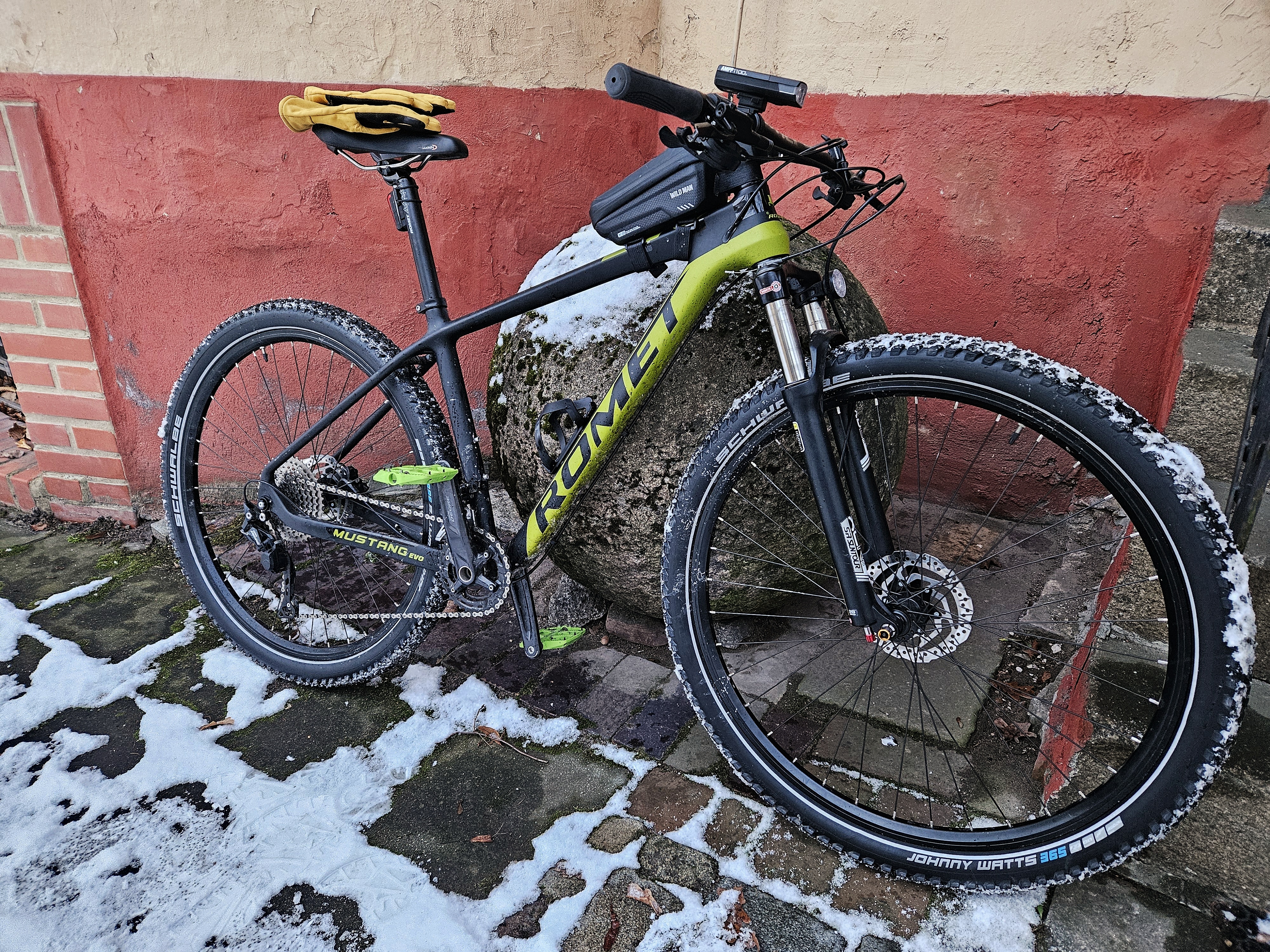 Санта Клаус мне принёс под ёлочку велоништяки: новый карбоновый руль, грипсочки, топталки на зиму, новый задний свет, покрышки Швабли и датчик каданса к велокомпу, который я так и не прикрутил пока. Да и вообще, зачем оно немощному старому алкашу? Ну пусть будет.