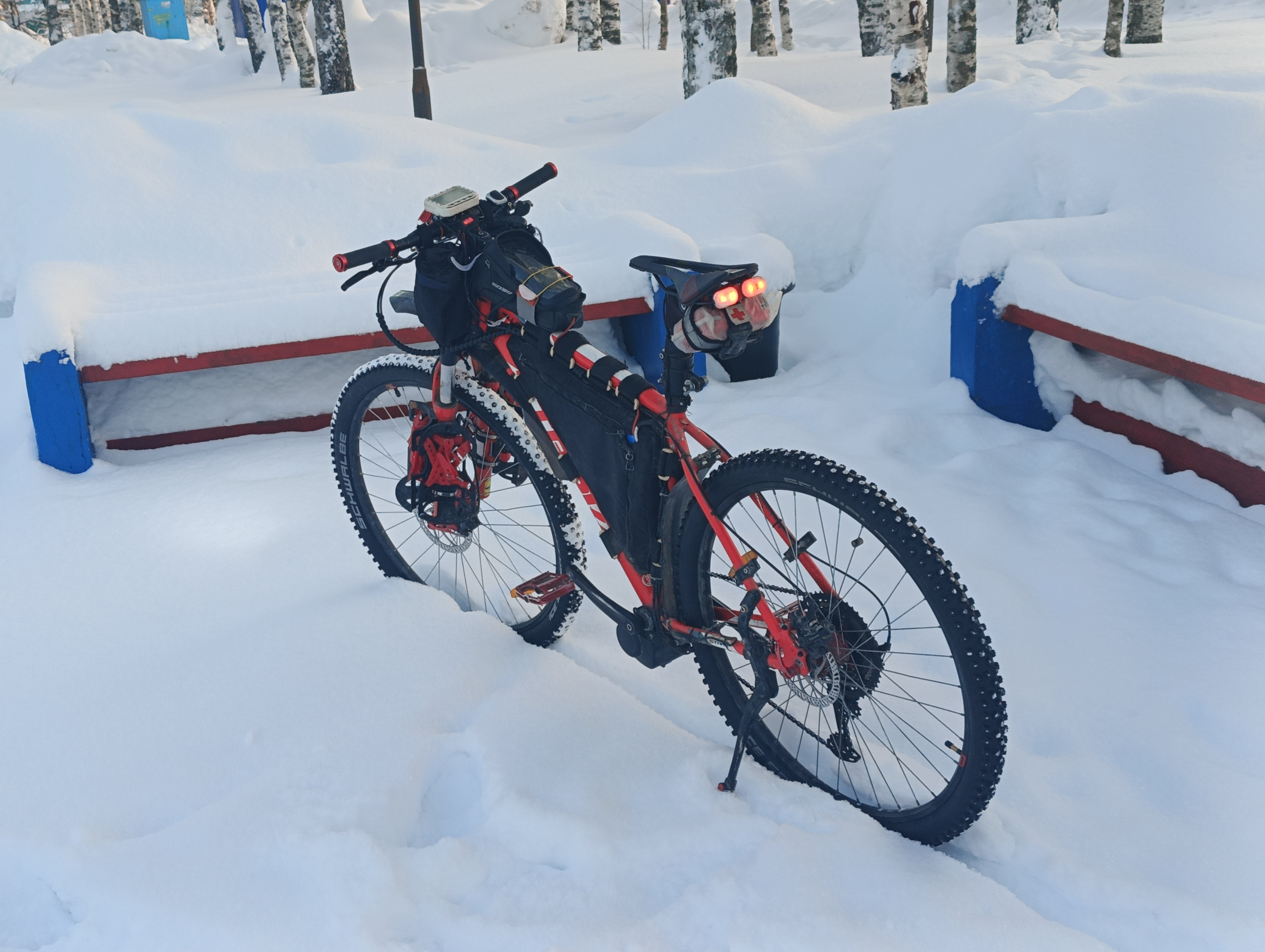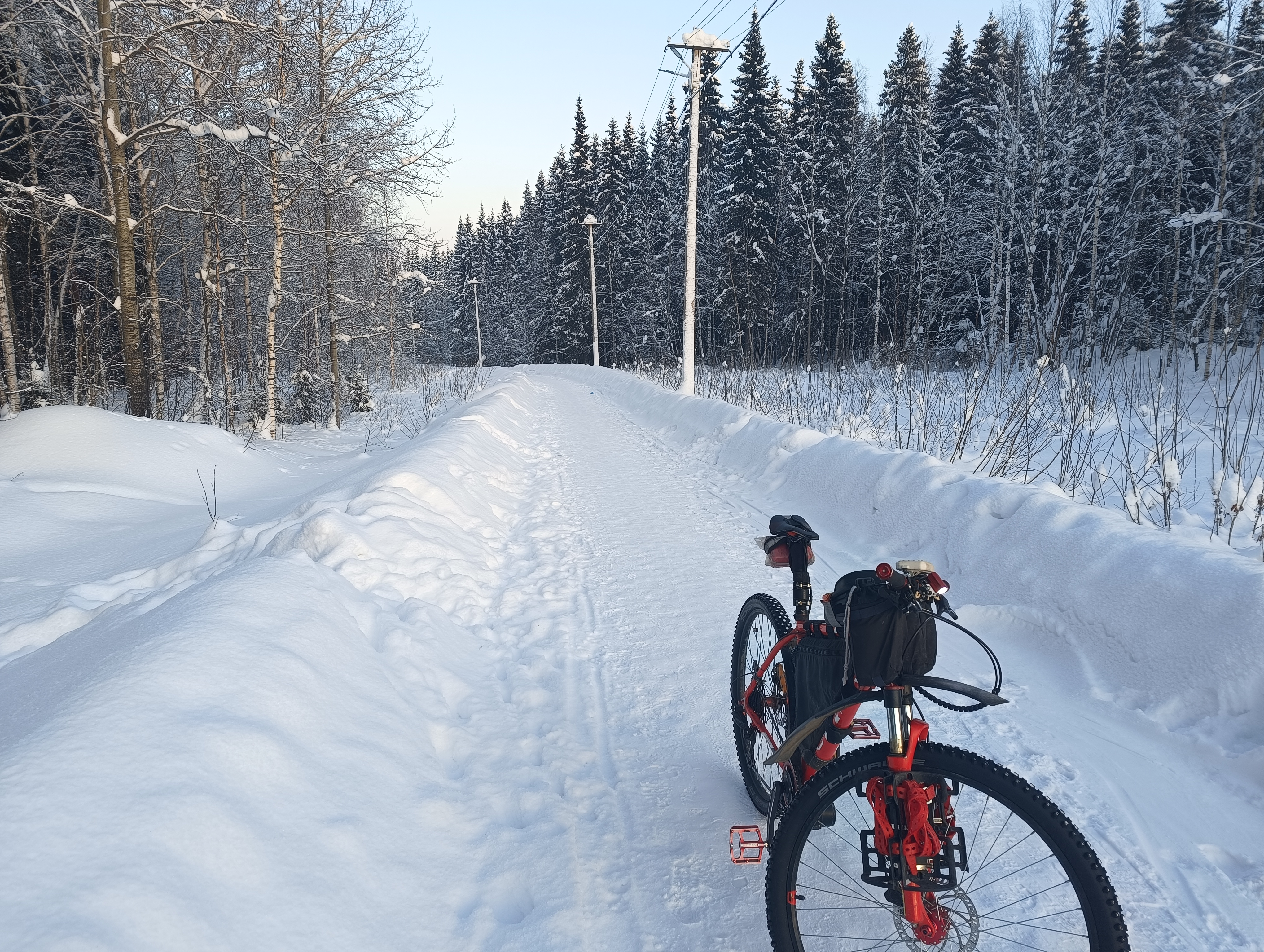 Зимой конечно тяжко катать, за полтора часа только 15км проехал, хотя 5 лет назад всю трассу лесную проезжал за это время, а целиком она в два раза длиннее.