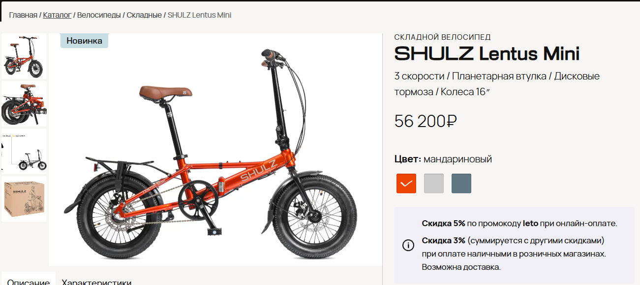Купил SHULZ Easy Fat Nexus. Уже поездил пару раз. Задний багажник не нужен для города - снял. Передний багажник купил - поставил. Пока сомнительно, но позволяет не возить на спине рюкзак. Планетарная втурка - это охуенно. Жаль цепь стоит а не ремень. Тормоза односторонние, слабоваты. Если разогняться под горку, то очень страшно - долгий тормозной путь. И периодически диск гнётся и начинает шуршать. Если прям гонять жестко по лесу, то начинает поскрипывать. В целом я доволен пока, посмотрим как дальше будет. Можно ещё доёбываться по мелочи, но надо понимать что это складной небольшой велосипед.