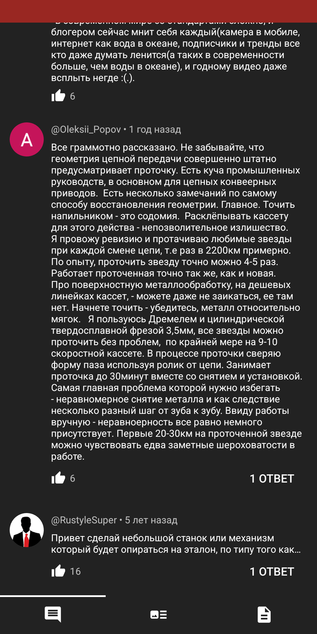 >>1576718 Я сам виноват. Надо было сразу выбраковывать цепь, а я наездил лишнее на растянутой цепи тем самым испортив кассету — вот такие выводы. С кассетой и шаблоном цепи все в порядке. Штангенциркуль у меня есть. Для цепи я его не использую.