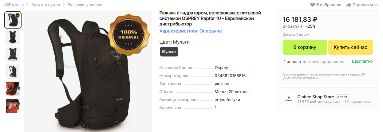 60-ти литровый Оспрей Левити весит 870грамм. 17-ти литровый велорюкзак весом в 920грамм, который пытаются втюхать за 9 тыщ в 2025-м году это уже слишком даже для Дойтера.