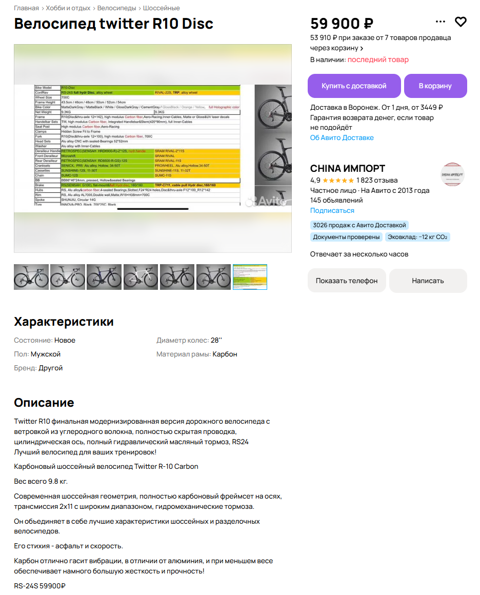 Второе фото - мой карбошоссер, без педалей и обмотки, можно накинуть 100г на обмотку, но все равно 9.8кг как у твитора не выйдет)))0