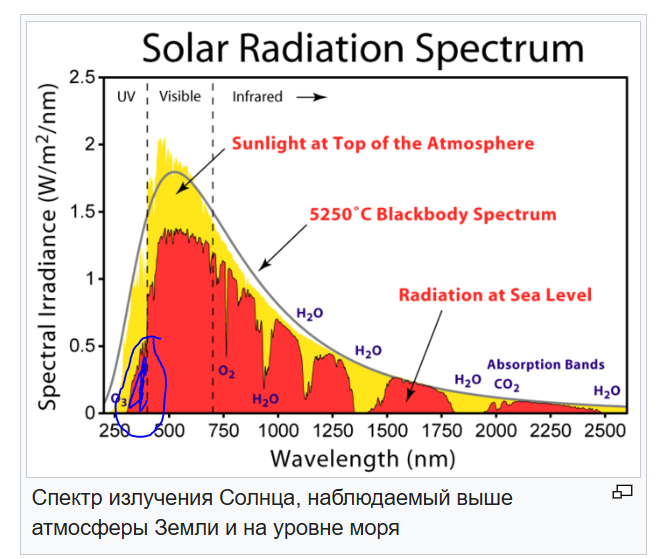 Вот спектр Солнца, там в УФ диапазоне какие-то сопли от общей энергии излучения. Тебе маркетологи хуету какую-то впарили, а ты теперь рассказываешь как это пиздато.