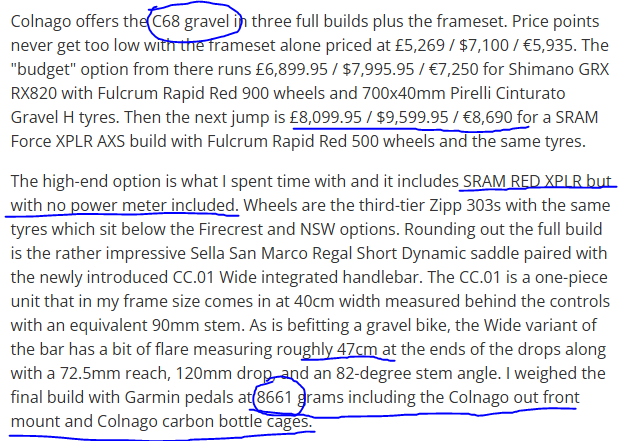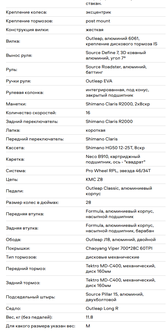 Что сейчас есть купить из эндуренс шоссеров и что стоит рассматривать? К примеру: Format 2232 на Tourney за 50К с групсетом на сезон под замену, на ободных тормозах и эксцентриках Twitter C6 на Claris за 50К с групсет на сезон под замену на херовой кривой гидравлике Twitter C6 на SEHSAH G13 за 60К+ с групсетом без запчастей, но целиком на алике за 40К лежит, и есть расходники кассеты с цепью. Или 2x12s взять и передний переклюк выкинуть чтобы не мешал, всё равно сломается. Jamis Ventura на Sora за 78К на насыпи и эксцентриках, на механике, зато нормальной Или проще смотреть грэвелы до 10кг с ободом 18-21 под шоссейную резину 28-32c?