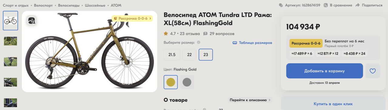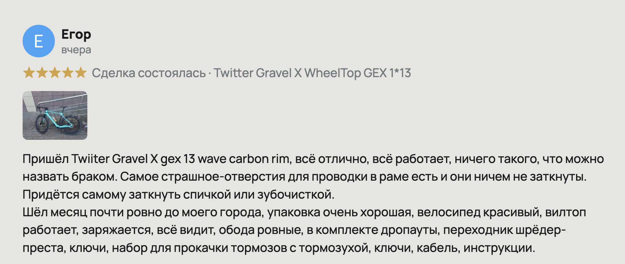 >>1581064 (OP) Заказал себе гравийник с двумя передними звёздами. До этого долго выбирал и сейчас всё нахожусь в раздумьях: правильно ли я поступил? Основным мотивом покупки грэвела был переход с тяжёлого МТБ на шоссейник, но который более проходимый и универсальный, чем его классический вариант. Катаю основную часть времени по городу и хочу больше скорости, поэтому выбор пал на две звезды. Хотел сначала одну звезду чисто из-за новизны и простоты, но решил уйти от МТБ-шных тенденций в сторону шоссе. Упустил ли я что-нибудь ценное или всё правильно сделал?