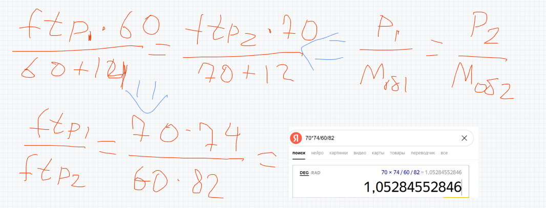 Ну и если один ездок весит 60кг, и его велосипед, например 14кг, а второй ездок весит 70кг, а его велосипед 12 кг, то преимущества по весу будет именно у первого (правда не факт, что у него будет преимущество по мощности).