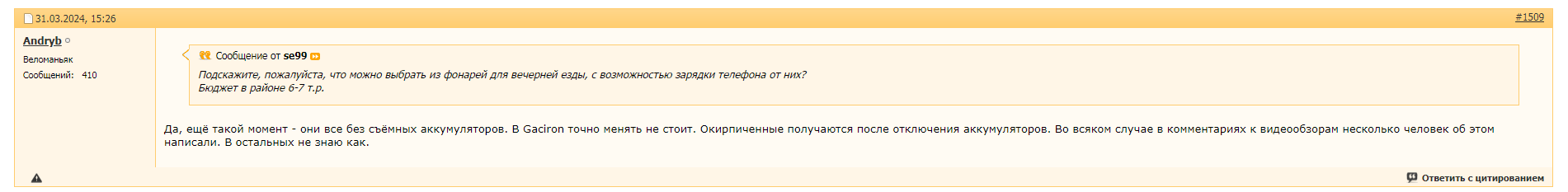 Окей, спускаемся ниже, последняя доступная модель похожая на велофонарь Sigma Sport NUGGET II, тоже с сертификацией, тоже старомодный micro-USB, тоже ipx4, куча жалоб на батарею, особенно в холод (заявлено 2..5 часов в зависимости от режима в лабораторных условиях) - нас такое уже не устраивает, зато обильно доступно на маркетплейсах, например 2к на яндексе https://market.yandex.ru/card/--15051/102306917940 наценка 262% относительно бк.