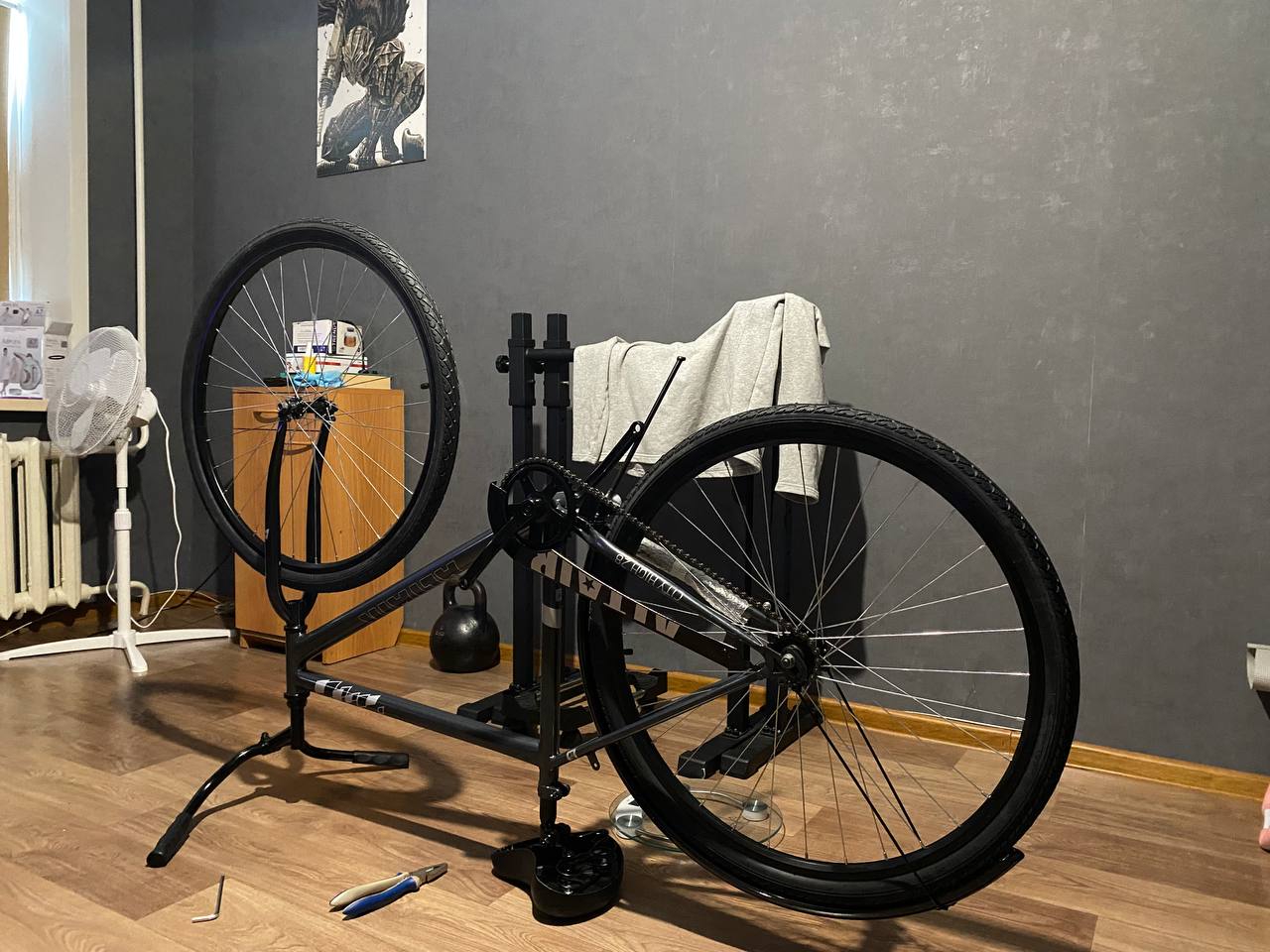 Из минусов, для того чем он является. в горку он тянется тяжеловато. Руль ООООЧЕНЬ блять габаритный и длинный. Сидушка пиздец, ее на смену, я себе уже и простату отмассировал и яйца отбил. Крыло заднее пришлось колхозить на стяжки к раме, так как на перемычке снизу оно не дотягивало, а сверху перемычки нет. На ГОРИЛЛЕ(или хз как это называется, куда переднее крыло крепится) вместо нормального отверстия под болт и гайку, там чисто пластмассовая хуерга со своей резьбой и туда нужен маленький по длине болт. Ну и собственно сам по себе он габаритный очень. Это про РУУУВ 18 рама 29 колеса