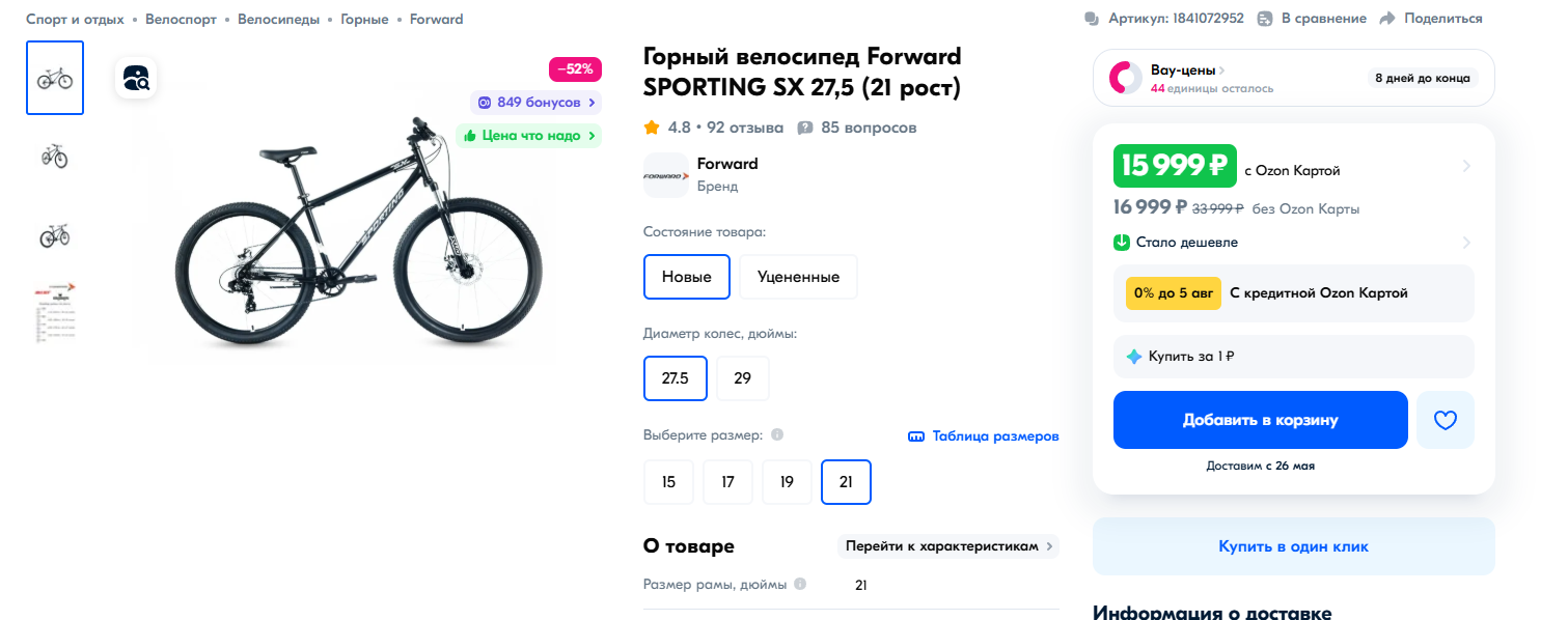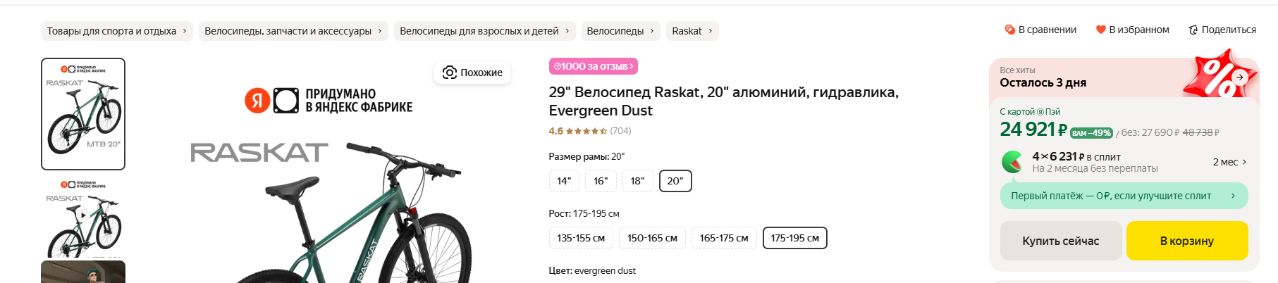 0) Мониторь скидки и акции на озоне/вб/грефомаркете. На велосипеды российских и китайских брендов часто хорошие цены.