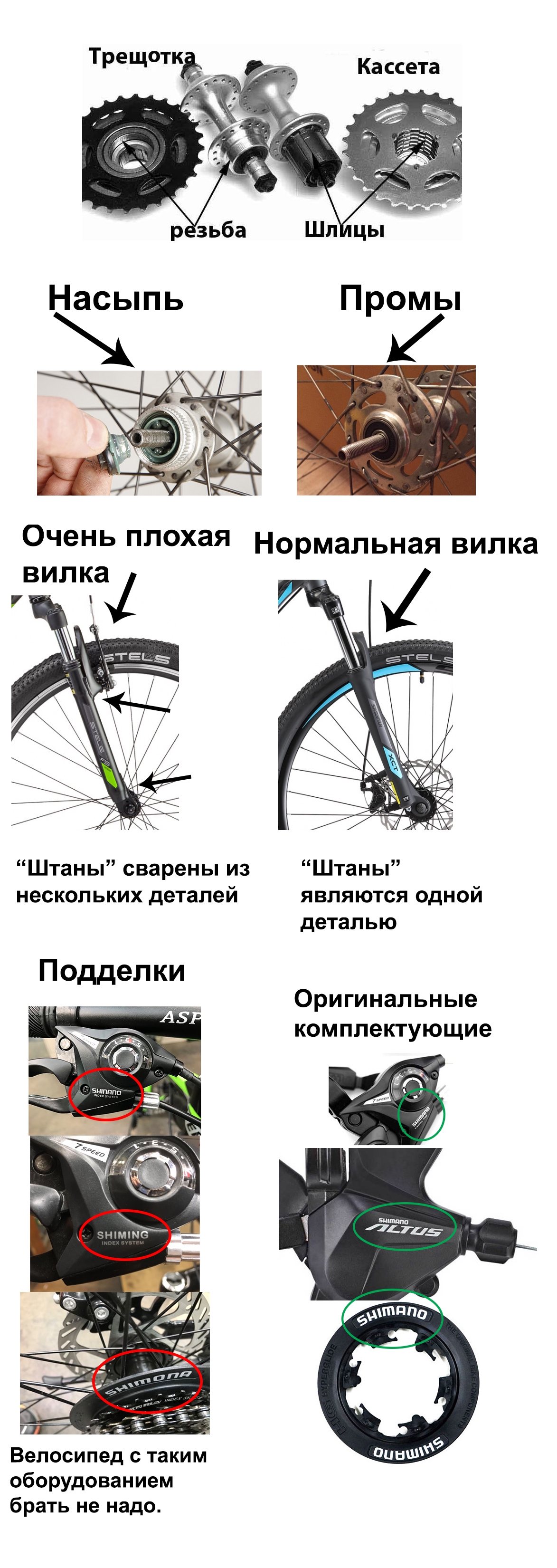 >на какие характеристики Обязательных два пункта: 1. сзади должна быть кассета, а не трещотка 2. если вилка мягкая, то с цельнолитыми алюминиевыми штанами, а не со сваренными стальными