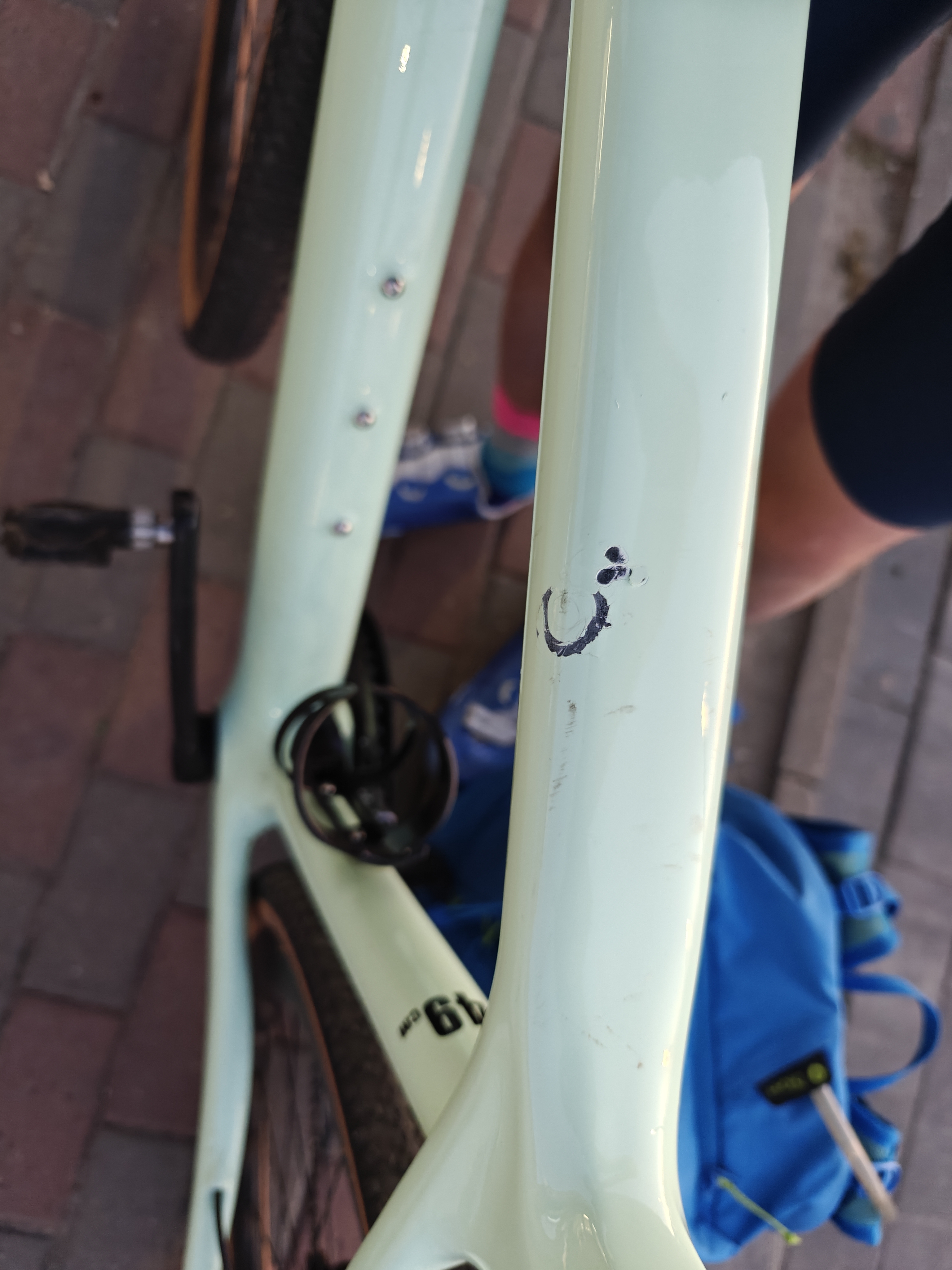 Странно, у меня вообще никаких следов на карбоне, не смываемых тряпочкой (только к нижней трубе прилипло что-то вроде цемента, но это не повреждение, это налип). Притом что я много раз вел в машину запихивал. Что делать теперь и не знаю, анон. Есть какой-то лак для самостийной покраски карбона.