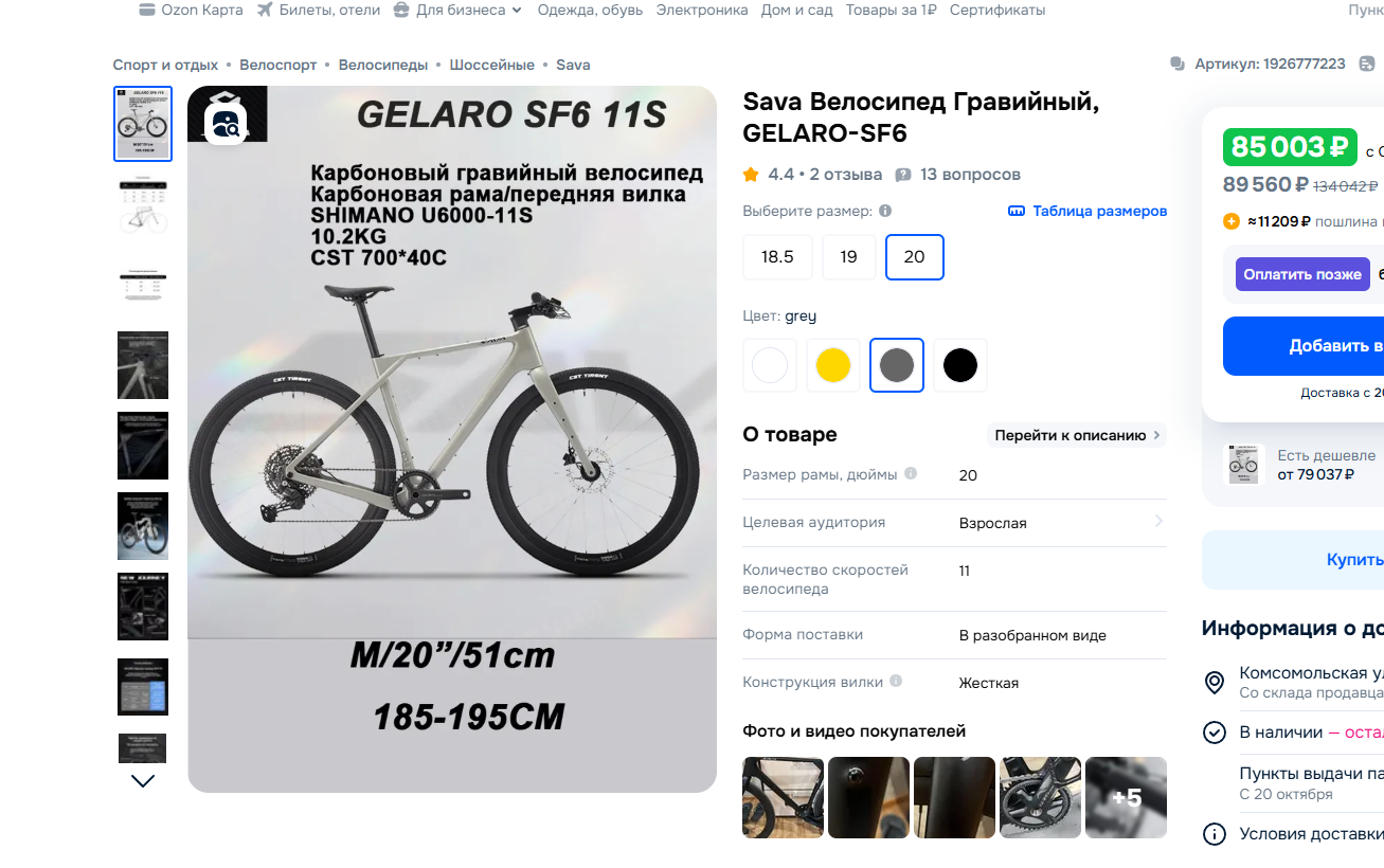 Краткий ФАК -Где купить? -Сейчас на озоне хорошие цены. Кроме того на авито продавец у которого типа дешевле всего https://www.avito.ru/brands/i32778127 и продавец который типа всё настраивает и проверяет и торгует со склада (но дороже) https://vk.com/carbonara_bike