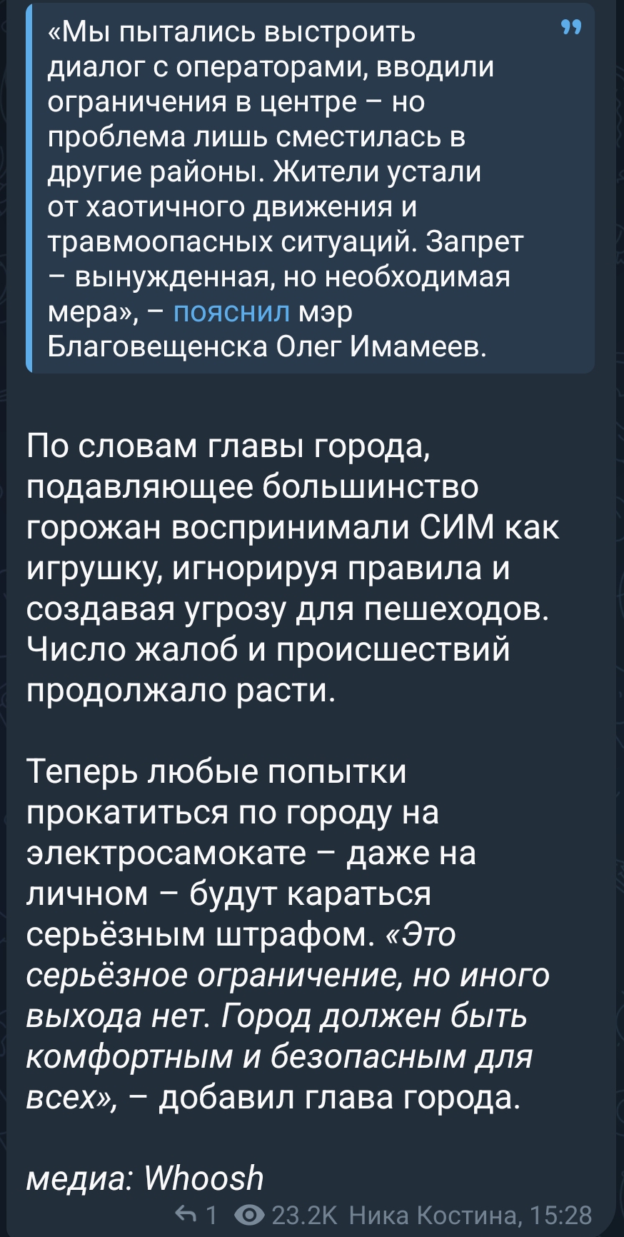 Мужики на злых самокатычах - к вам вопросов нет (хотя и у вас своя специфика), но объединять самокатошеринг/рак-из-днс-20к и моноколеса!? На вторых катаются энтузиасты с доходом и пониманием, на первых - биомусор, который отравляет жизнь всем, от пешек до автоебов.