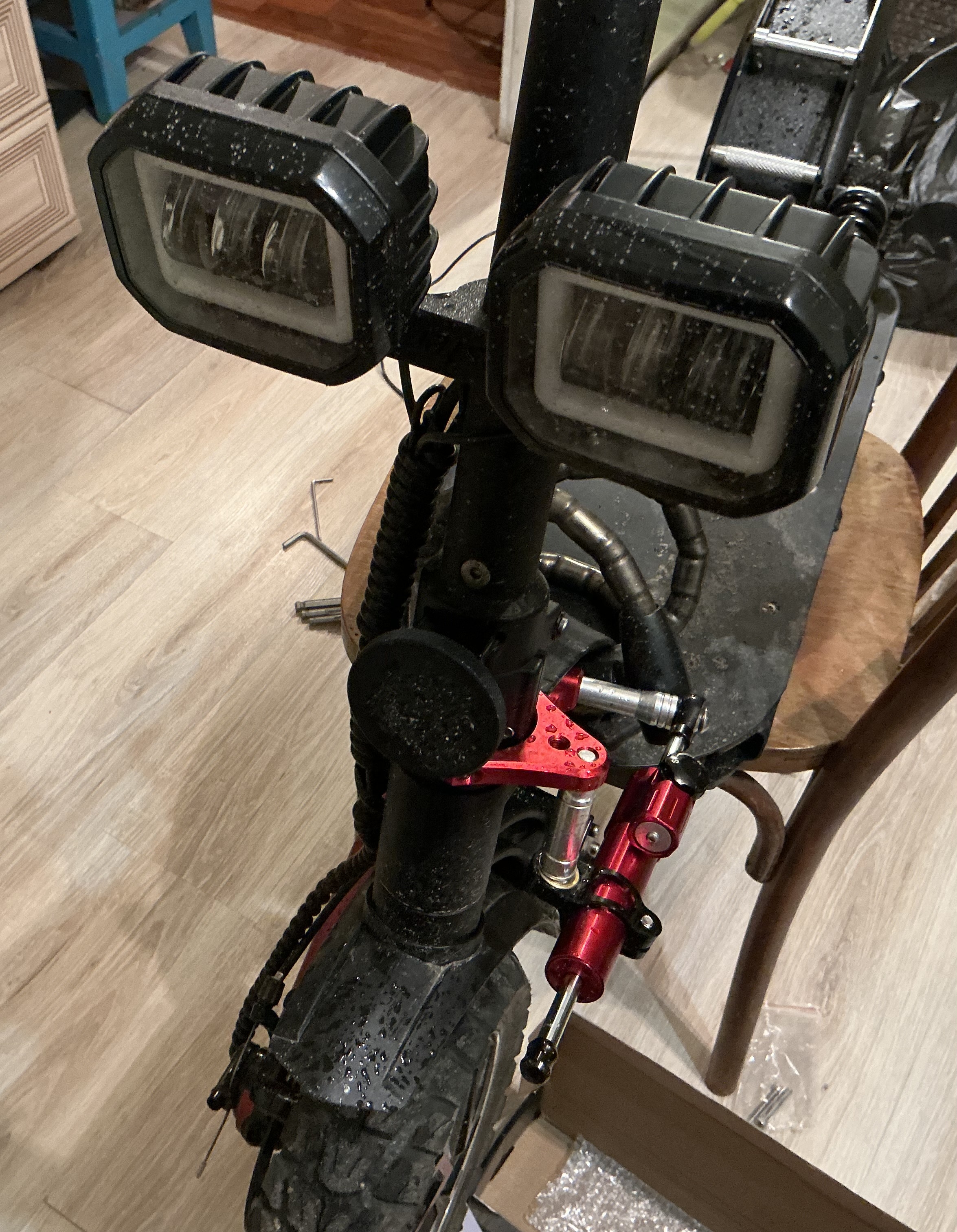 Поставил на g booster фары arctic и демпфер, только сегодня забрал из сервиса не хотел разбираться как подключать их. Выехал щас вечером покататься и потестить. Ну ебать, от фар вау эффекта нет, светят они немного лучше стока, но батарею жрут просто ебанись как. За 18 километров почти полностью батарею высадил, правда я на третьей скорости ехал, но я так всегда делаю. Эффекта от демпфера тоже пока не заметил, ну руль вертится тяжелее и красивая приблуда — и всё. С одной рукой я и так всегда почему-то мог ездить, а воблинг внезапно пропал полностью, когда купил удлинитель руля.