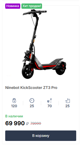 >>1637043 > Мощность. На самом ДНС висит дисклеймер что требуются права категории "М" Ну попробуй найти недетский самокат на дыныэсе где нет этого дисклеймера. (Подсказка, все найнботы на днс с этим дисклеймером ходят, кроме C2 lite, он детский, с максимальной нагрузкой 50 кг)