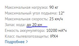 >>1624703 На пробег влияет и где катаешься, и как катаешься, и в какую температур. Я летом с прогулочной скоростью могу и 30 км вытянуть, осенью за поездку в 5км по пересеченке батарея просаживается на 50%