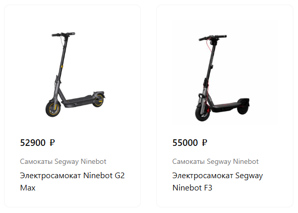 Положняк по производителям, в порядке убывания доверия к бренду: Найнбот: в итоге, аноны оказались правы - самый более менее адекватный бренд из возможных, модели заинтересовали следующие: Ninebot F2 II: хорошая модель, но слабовата, на распродаже 35к - хороший ценник (для завезенного в рф е-ката), в принципе бюджетная модель. Ninebot F3 Pro: отличный выбор, дороговат (если в рф), мало к чему придраться можно, весит почти ничего - 19кг. Ninebot MAX G2: имба, во всех смыслах, пояснять думаю не нужно, 55к у нас стоит, в днс ценник падал до 45к. Ninebot ZT3 Pro: новейшая имба, все новое, класное, модифицированное, но пластика многовато, и кажется что вилка - по габаритам маловата для такого е-ката. Ксяоми: вроде бы те же сигвеи, но плохое приложение, невыдающиеся модели, неопраданно дорогие, нет смысла их вообще рассматривать, да и моделей интересных - нет. Нави: в начале показались очень хорошими, но имеют много проблем, особенно с пластиком, поэтому смотрю на найнбот да и ценник у них почти не отличается (особенно у китайцев напрямую, знали бы вы цени - офигели бы) Мидвей: их модель амикс про в моменте на озоне стоила 45к очень хотле взять, а там разгон до 50кмч, двойной привод, 2000W, емкий акум - но решил не брать из за проблем с болтами которые слизываются, качеством метала, пластика (он ужасен) и прочего, приложение - почти отсутствует, а это хуже чем если бы его не было.