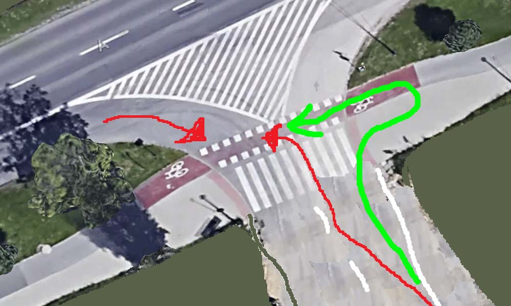 так получается коллизия, нет ни в одном пдд регулирования как можно заезжать на велодорожку, либо водила должен понять что я поворачиваю и пустить, либо мне нужно по уебански выезжать на обочину и задерживать поток сзади..